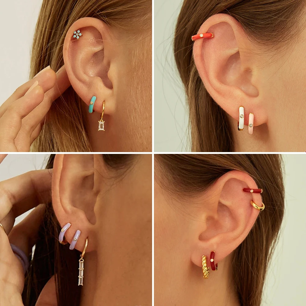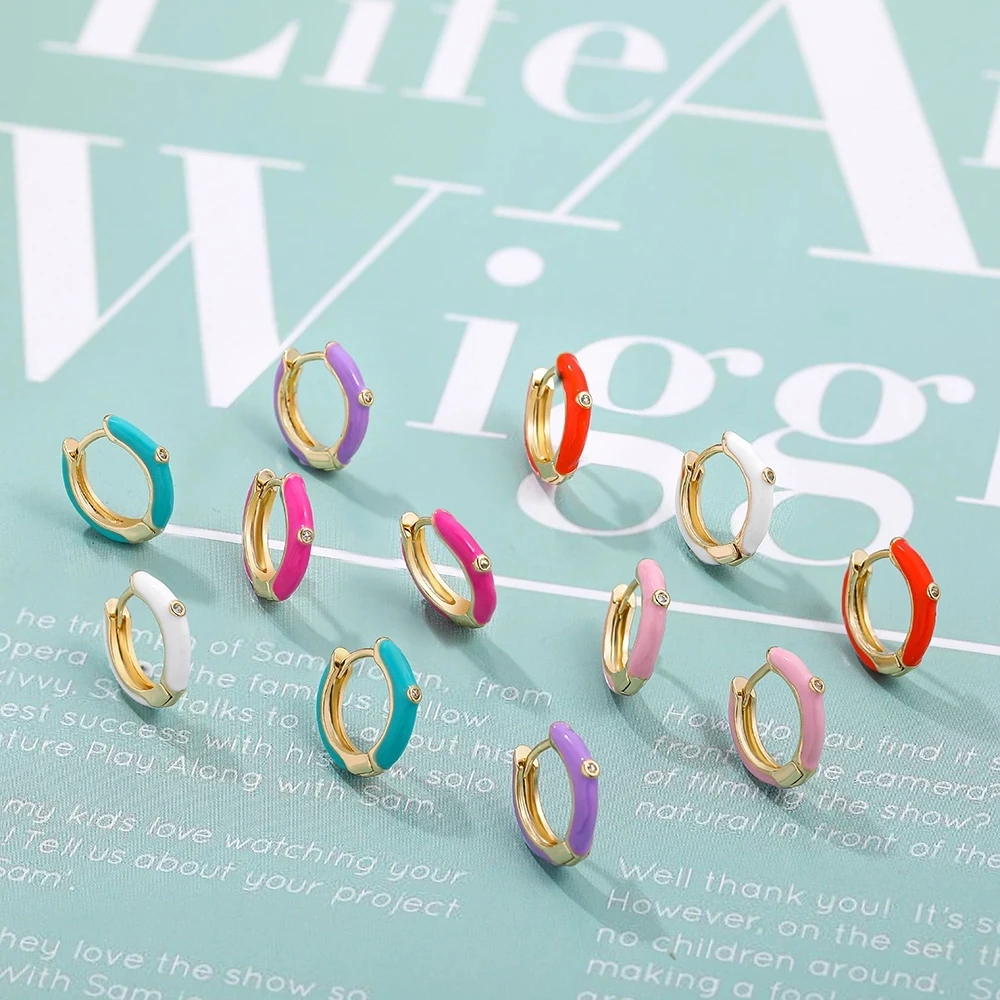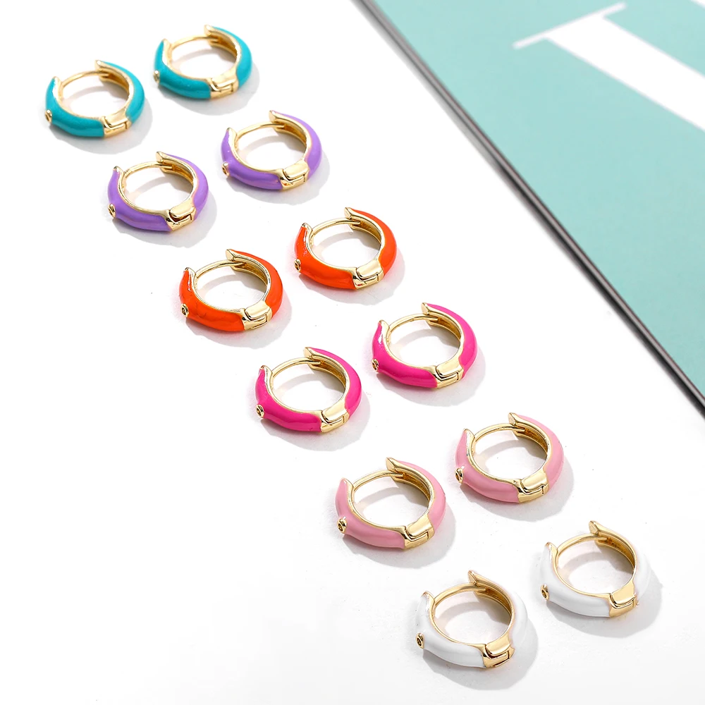 Модные круглые разноцветные эмалевые серьги-кольца с фианитами, маленькие серьги-кольца Huggie золотого цвета, женские кольца, модные ювелирные изделия