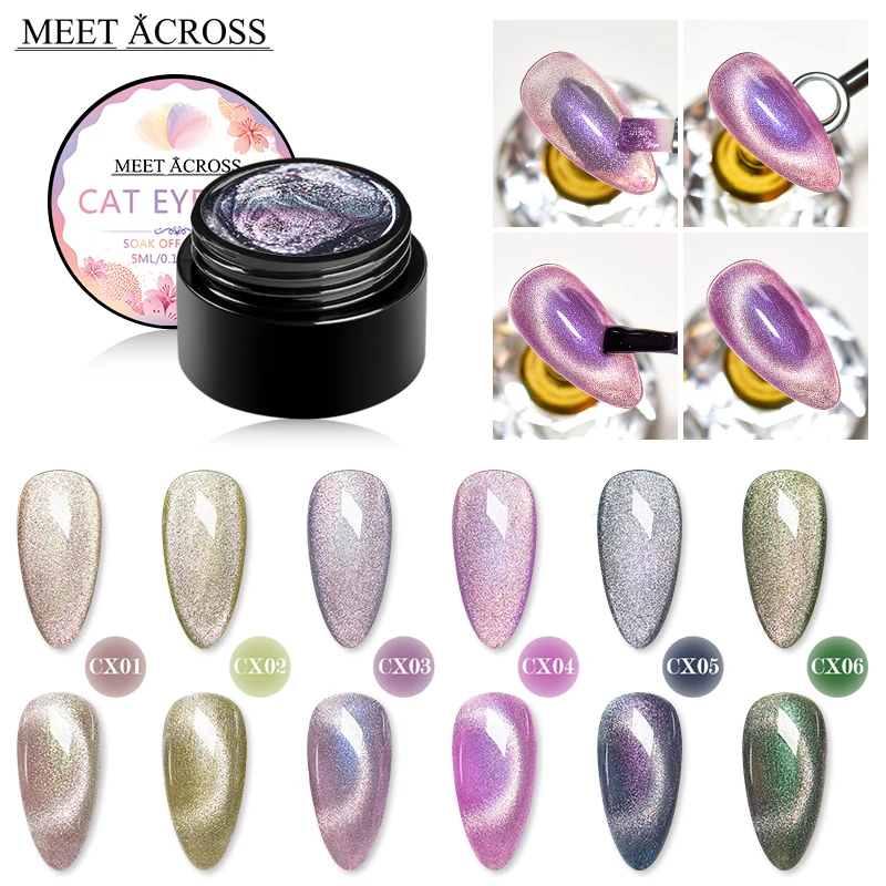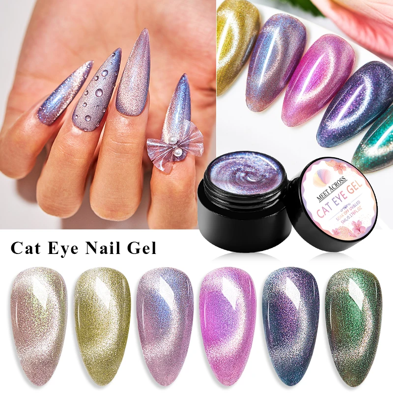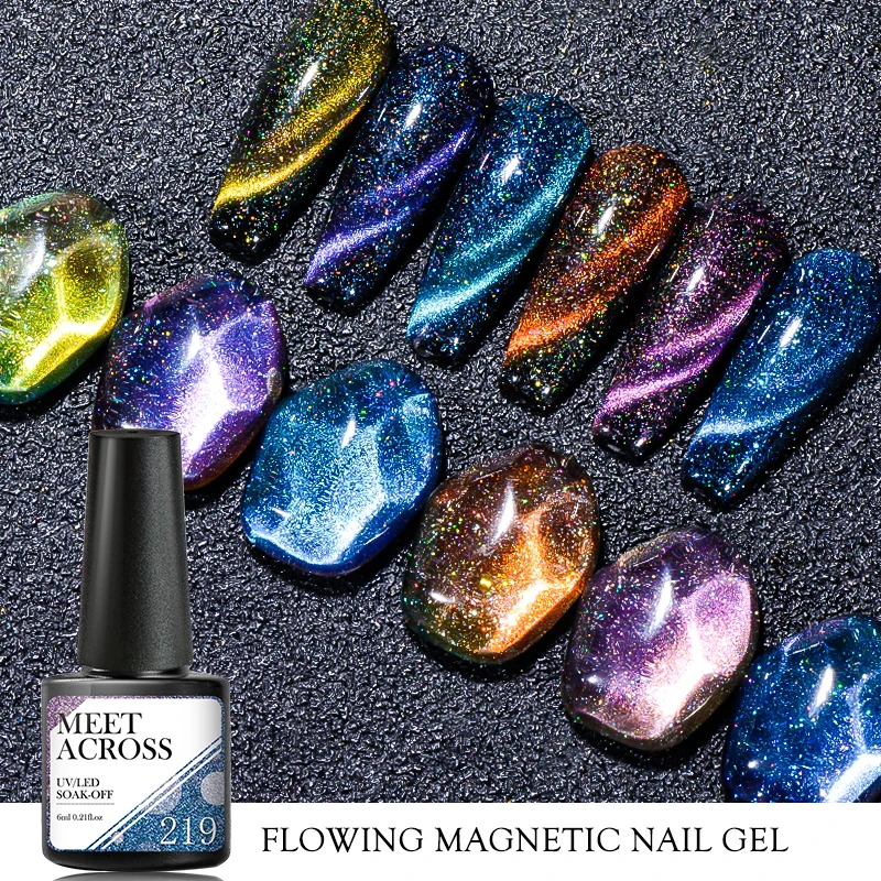 Гель-лак MEET ACROSS кошачий глаз для ногтей, 6 мл, дизайн ногтей, маникюр, Полупостоянный гель, гибридный лак, магнитная палочка