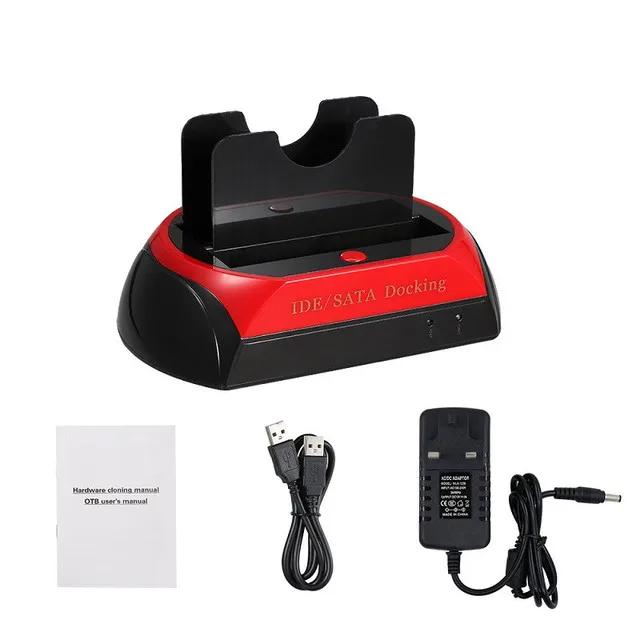 Док-станция HDD поддерживает подключение и воспроизведение, не нужно перезапускать компьютер. Дизайн без инструментов, простота установки и замены жесткого диска. Использование высокопрочного АБС-пластика с деликатным и простым внешним видом, обеспечивающим отличную производительность. Легкий и простой дизайн, простая сборка. Особенности: Док-станция IDE -Цвет: черный и красный. -Материал: АБС-пластик. -Тип штекера: штекер UK. Совместимость: все жесткие диски IDE/SATA 2,5 дюйма или 3,5 дюйма. Потребляемая мощность: 100-240 В, Гц, А. Выходной интерфейс: USB 2,0 OTB. Упаковочный лист1 * док-станция для жесткого диска 1 * USB кабель 1 штекер для зарядки