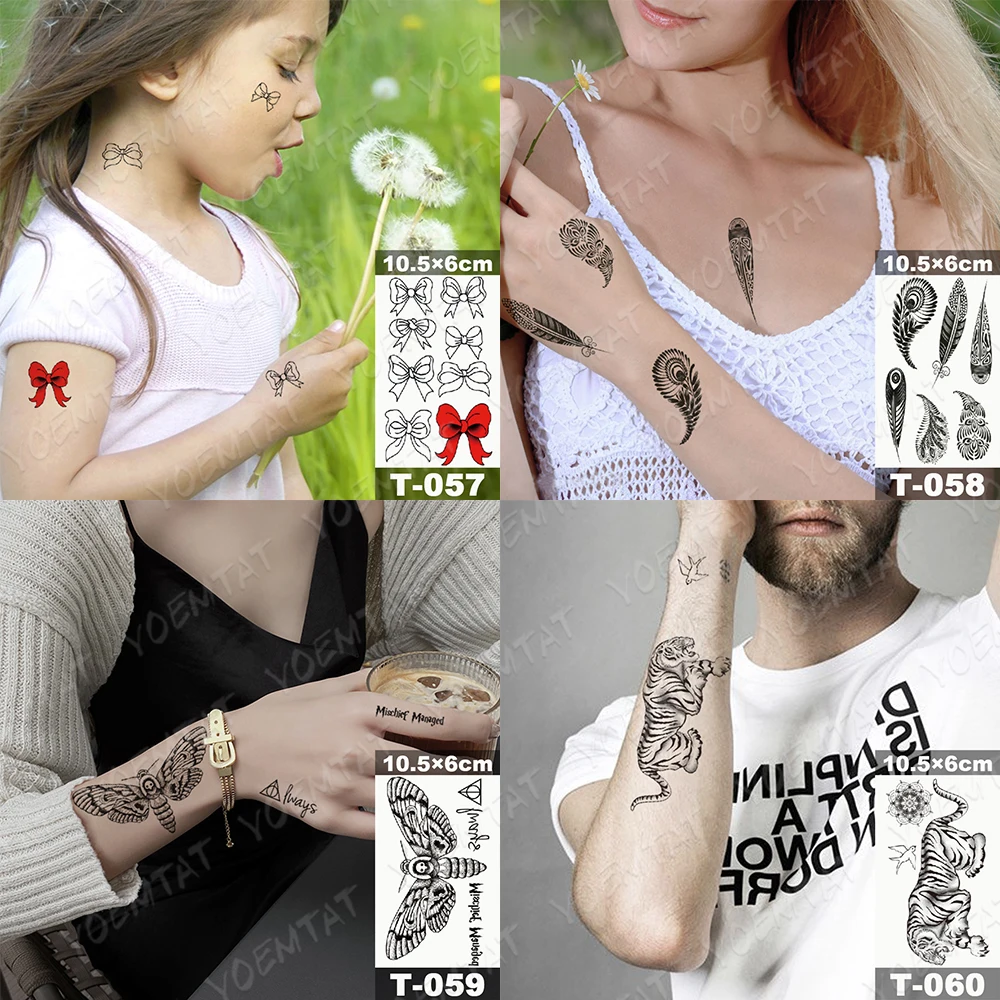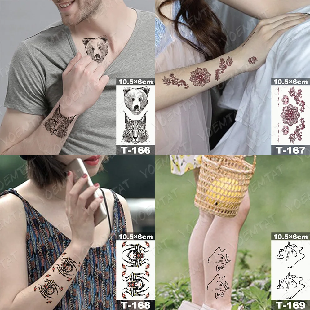 Водостойкая Временная тату-наклейка, простая линия, перекрестная змея, паук, олень, Сплетница, черная искусственная татуировка для мужчин, женщин, детей
