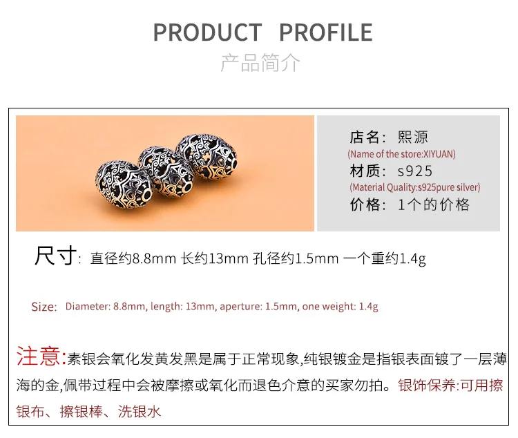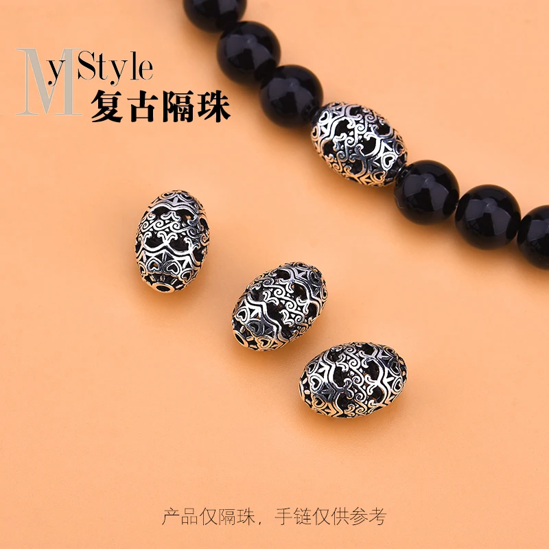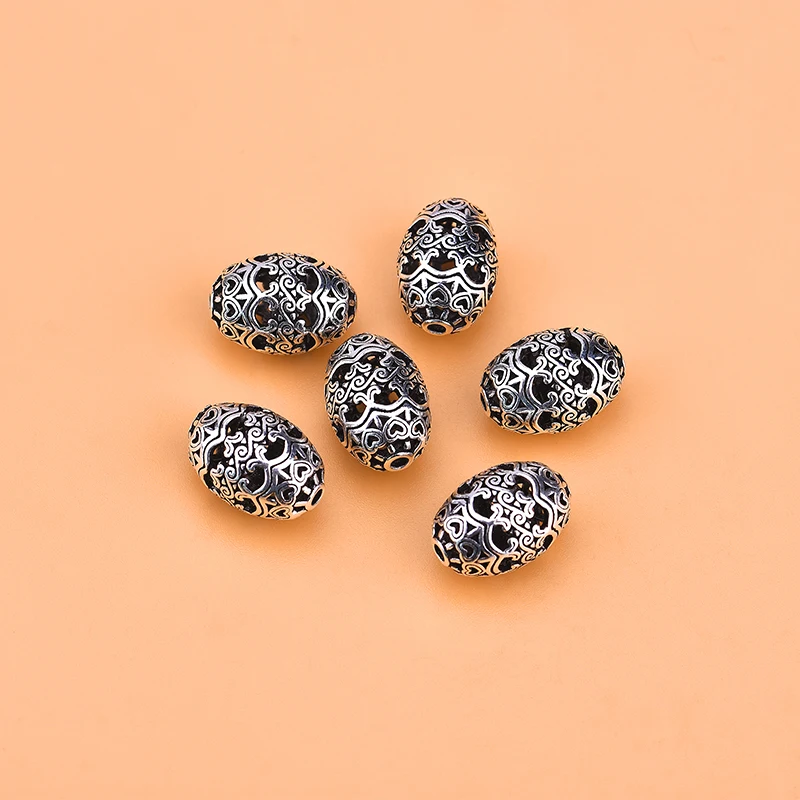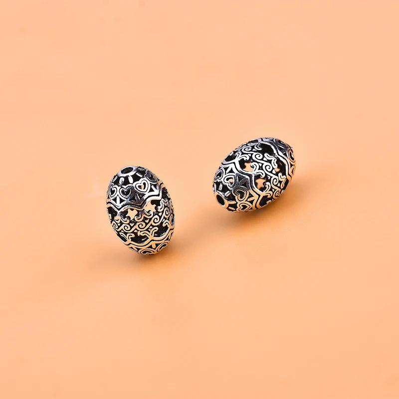 Ювелирные изделия из стерлингового серебра S925 пробы, ручная работа, с узором, вырезанными яйцами, бусины в винтажном стиле