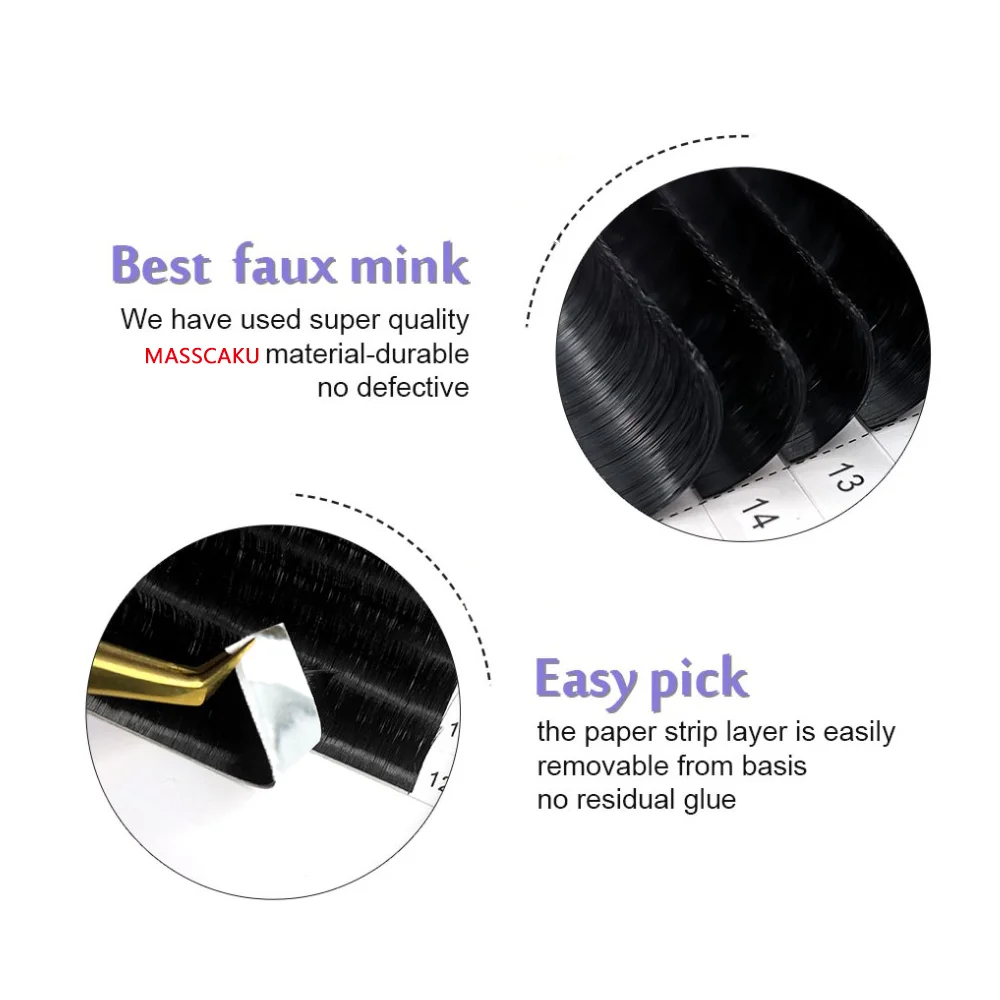 MASSCAKU наращивание ресниц премиум класса 8-20 мм 100% ручной работы материал легкое цветение мягкие натуральные накладные норковые ресницы