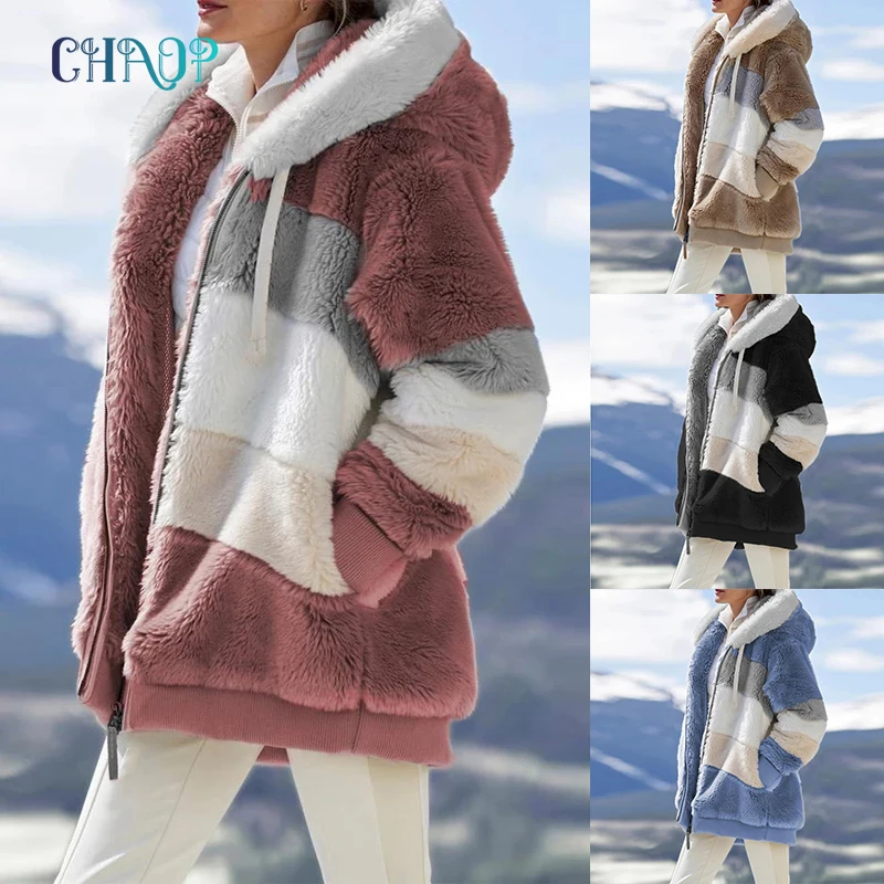 Женское пальто, новая плюшевая теплая Модная куртка с капюшоном и к...