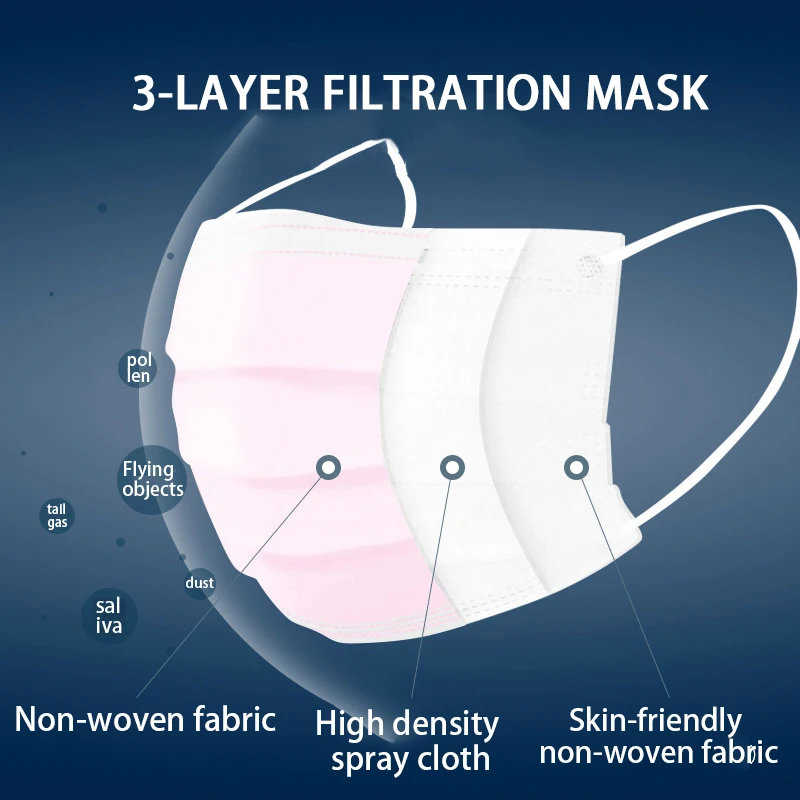 Маска для лица одноразовая непромокаемая с 3-слойным фильтром, 50 шт.