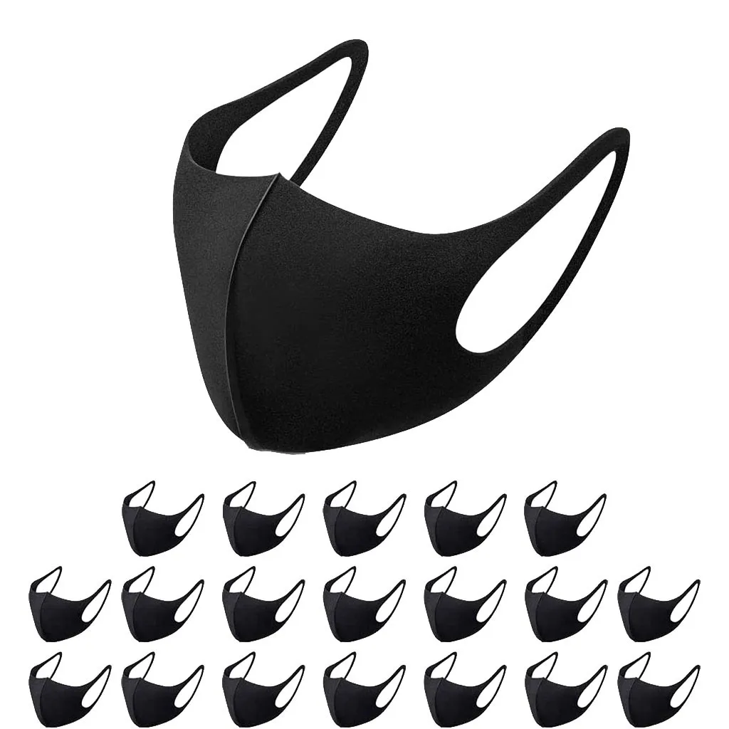 Маска для лица черная моющаяся многоразовая, 20 шт.