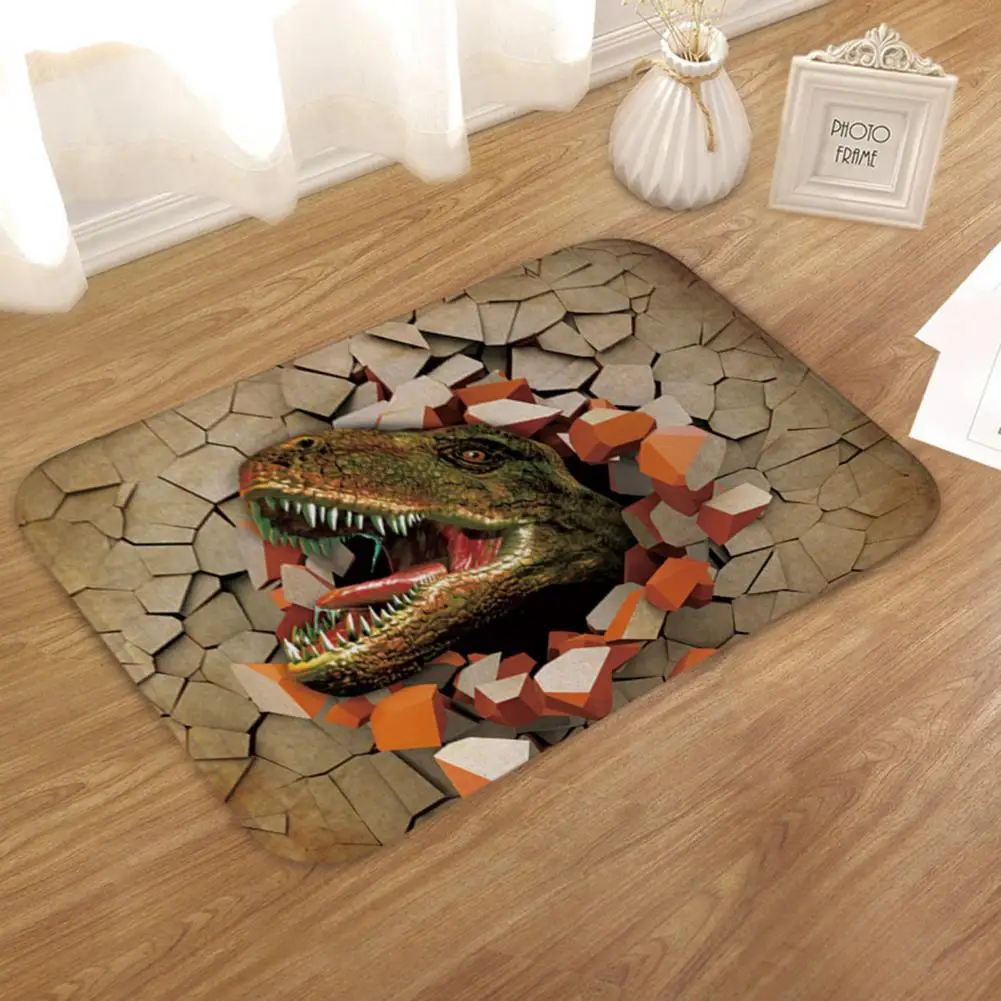 Коврик дверной с 3D рисунком динозавра, декоративный дышащий фланелевый нескользящий напольный коврик с принтом динозавра, для ванной комнаты