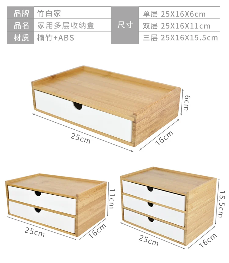 Бамбуковый раздельный ящик для хранения косметики, настольный орган...