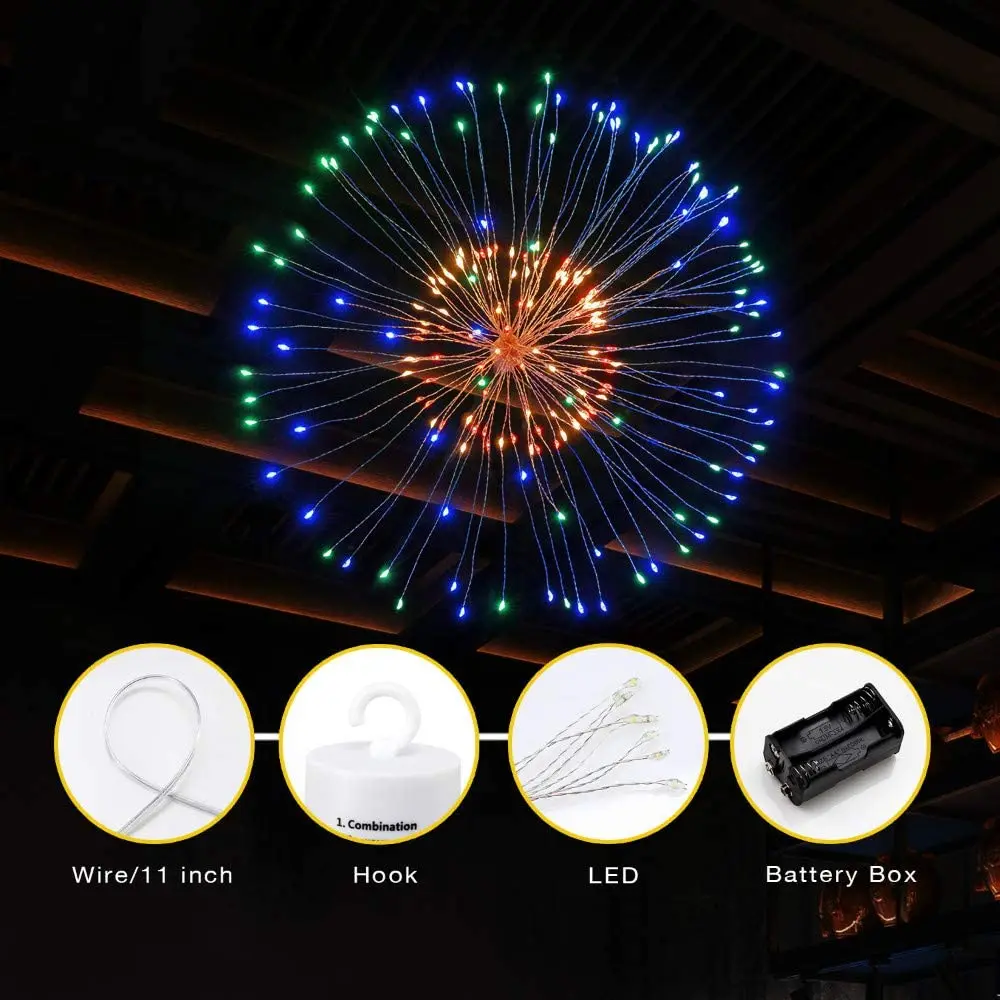 120 светодиодный медный провод огнеупорные огни: Фейерверк декоративные огни дизайн как букет формы, включает в себя 60 ветвей медной проволоки в пучке и 120 светодиодный микро-светильники. Огнеупорные Огни легко согнуты и сделаны в любой форме, идеальные декоративные огни на день рождения, светодиодный гирлянда феи, светодиодный светильник на Рождество, Вечерние огни