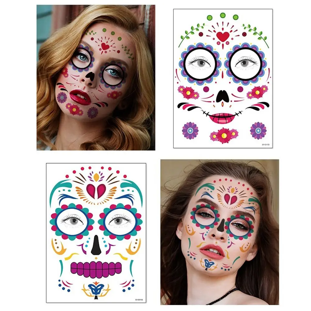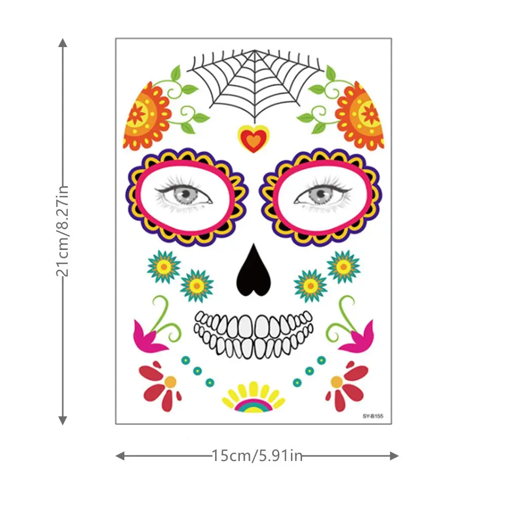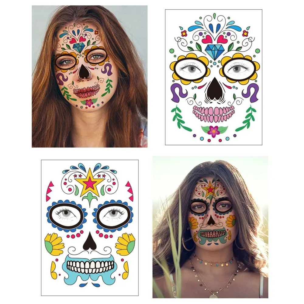 Временные тату-наклейки, 1 шт., поп, Хэллоуин, День мертвых, водостойкие, потостойкие, маскарадное лицо, тату вечерние вечеринка, праздничный Декор