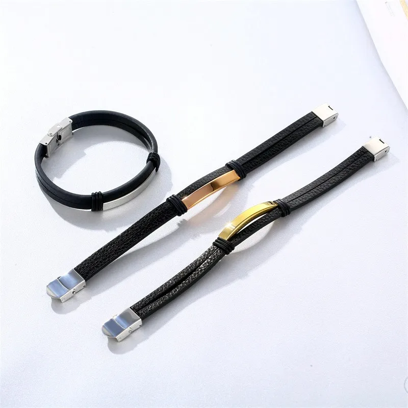 Индивидуальные кожаные браслеты для мужчин и женщин, браслет из нержавеющей стали с индивидуальной гравировкой имени, текста, логотипа, таблички, ювелирные изделия