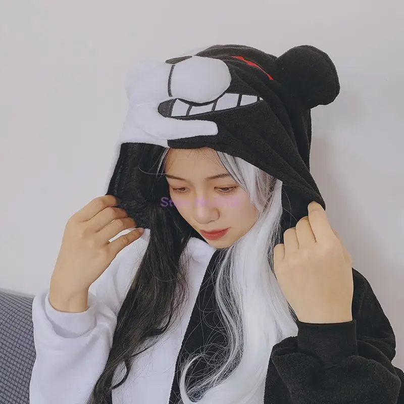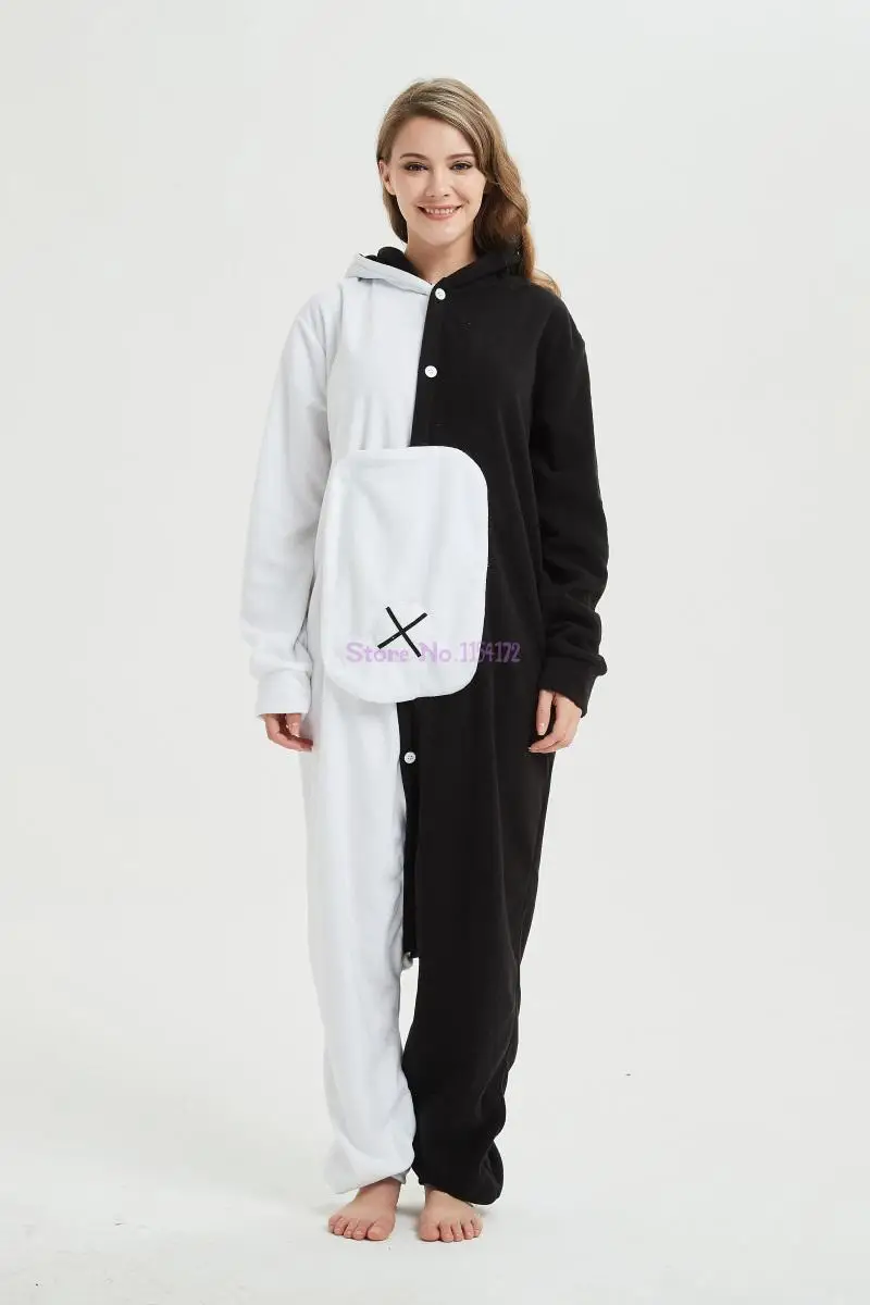 Взрослая Монокума кигуруми комбинезон аниме комбинезон в виде медведя Пижама черная белая искусственная женская мужская вечерние няя одежда Зимний комбинезон