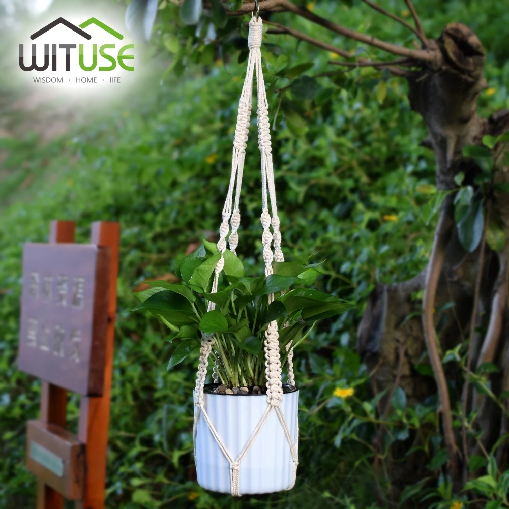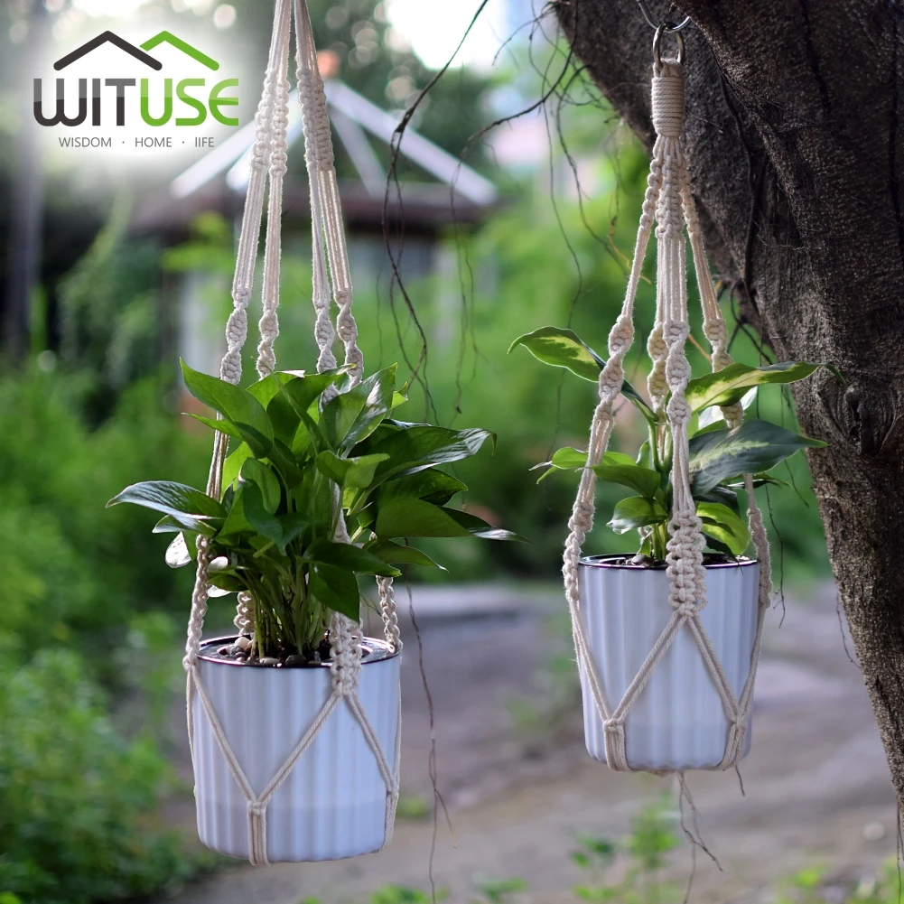 Винтажная вешалка для растений WITUSE, держатель для цветочного горшка, корзина с обручем, макраме, веревка с 4 ножками, крючок для украшения балкона и сада