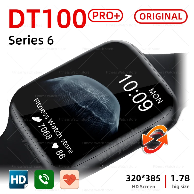 Смарт-часы DT100 pro +, динамические мужские и женские умные часы с поддержкой Bluetooth, с функцией вызова, pk Iwo 13 14 M26 HW22 W26 W46 pro plus max