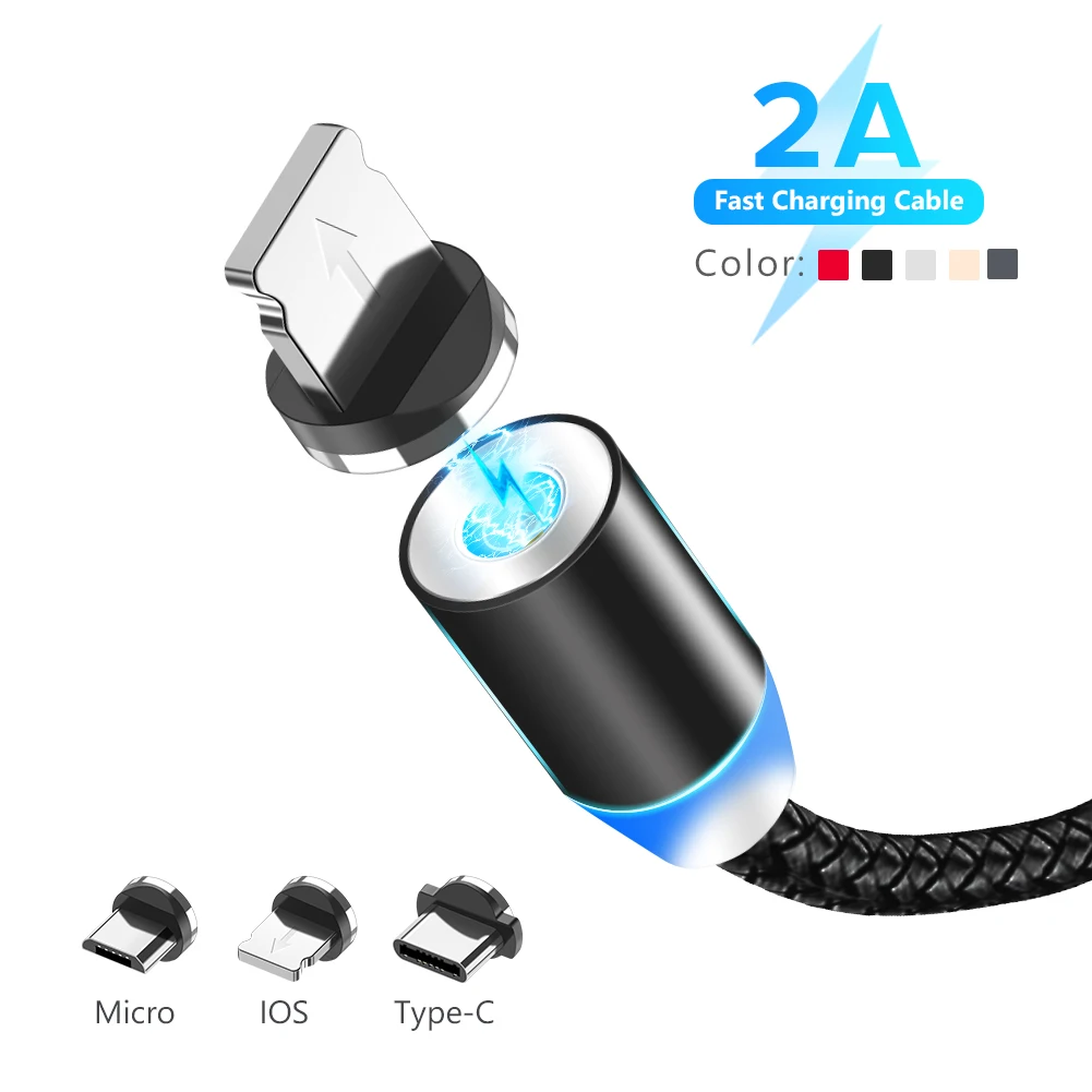 Модернизированный мощный Магнитный зарядный кабель, быстрая зарядка USB 2,0 для телефона android, светодиодный светильник включается при включении.