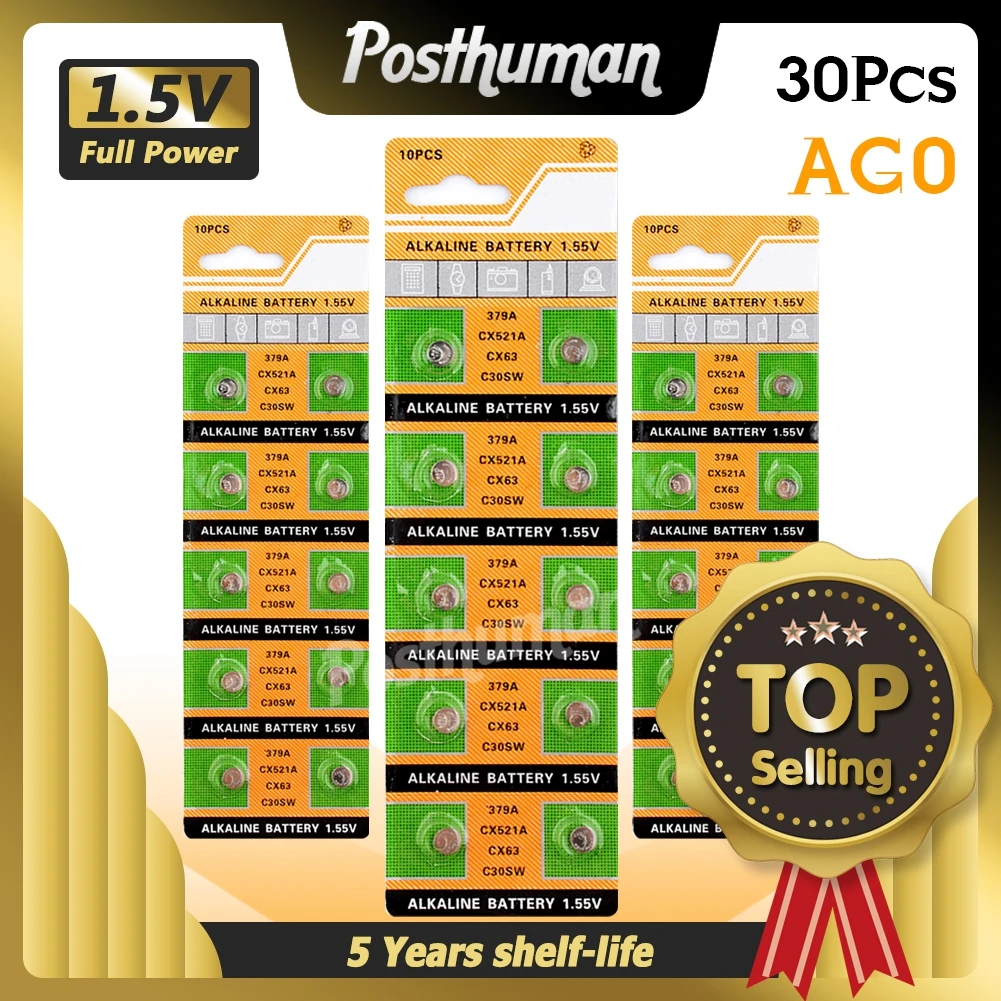 30 шт. Кнопочная батарея 1,55 в AG0 SR63 LR69 LR521 379A SR521SW GP379 D379 V379 V520 AG 0 Щелочная кнопка батареи для монет