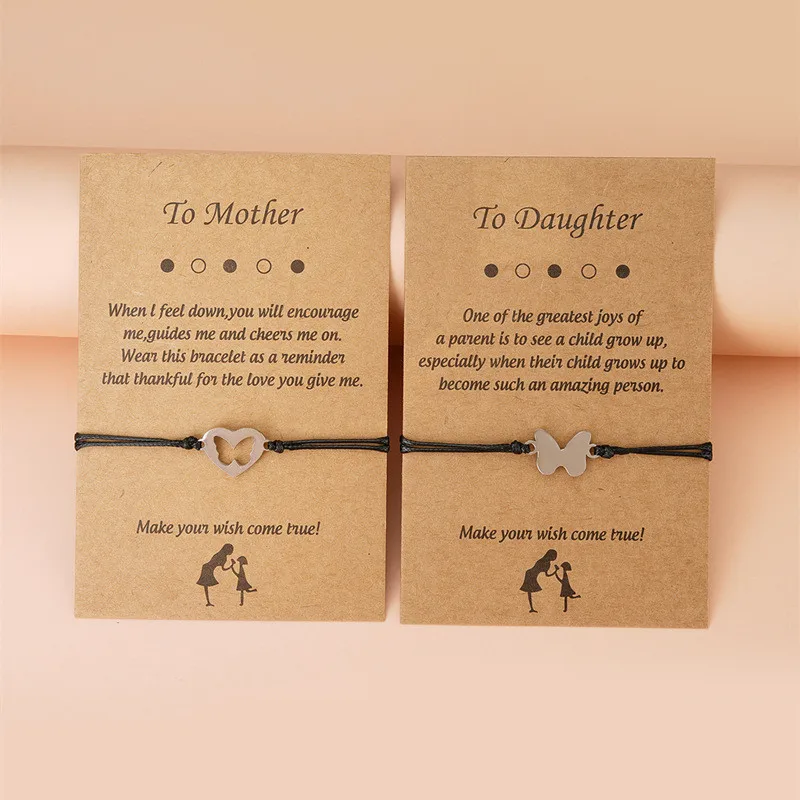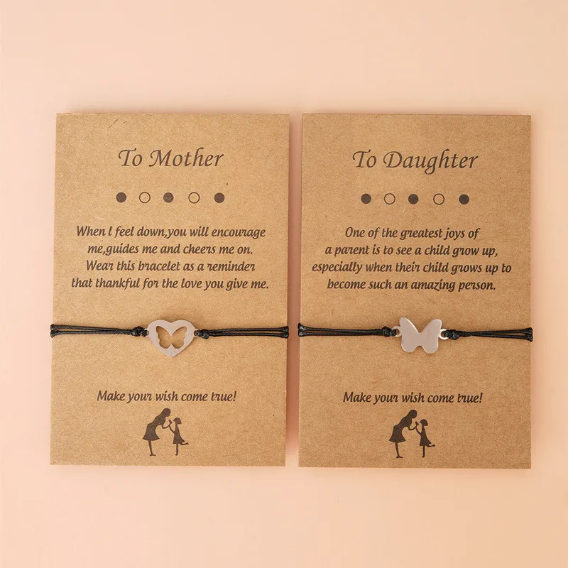 2 шт.компл. один для матери один для дочери винтажный плетеный браслет в стиле бохо для девочек из нержавеющей стали Сердце Бабочка очаровательные ювелирные изделия