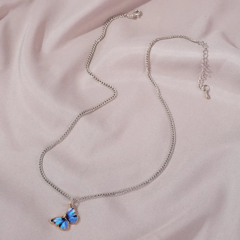 Женское ожерелье с подвеской в виде бабочки, с голубым градиентом