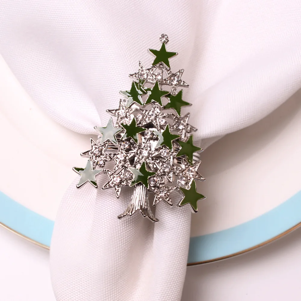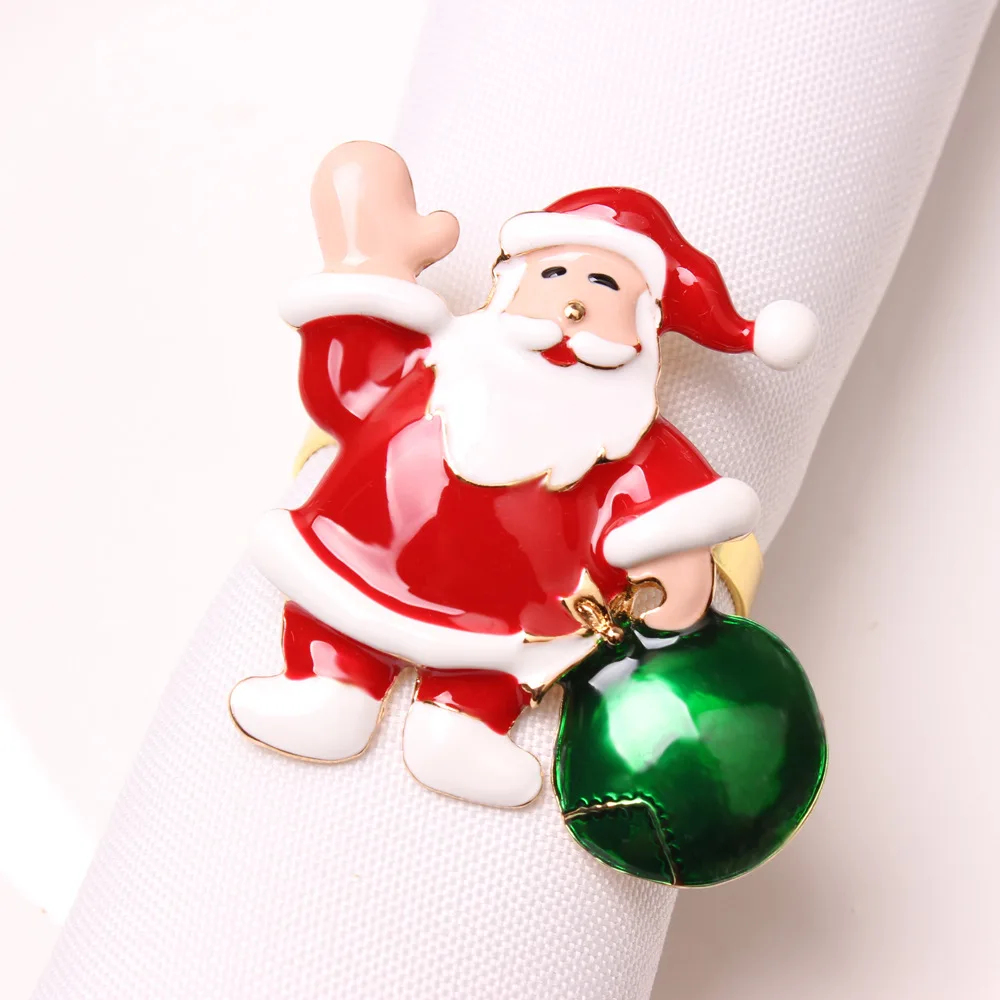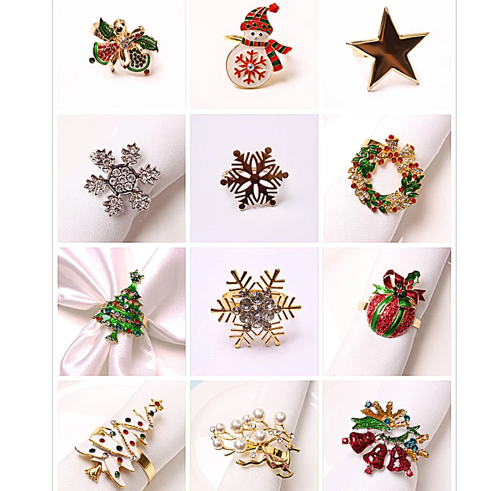 Новые рождественские кольца-держатели для салфеток, украшение для стола для дома, металлический лось, яблоко, снежинка, звезда, снеговик, венок, колокольчик, дерево, носки, шляпа