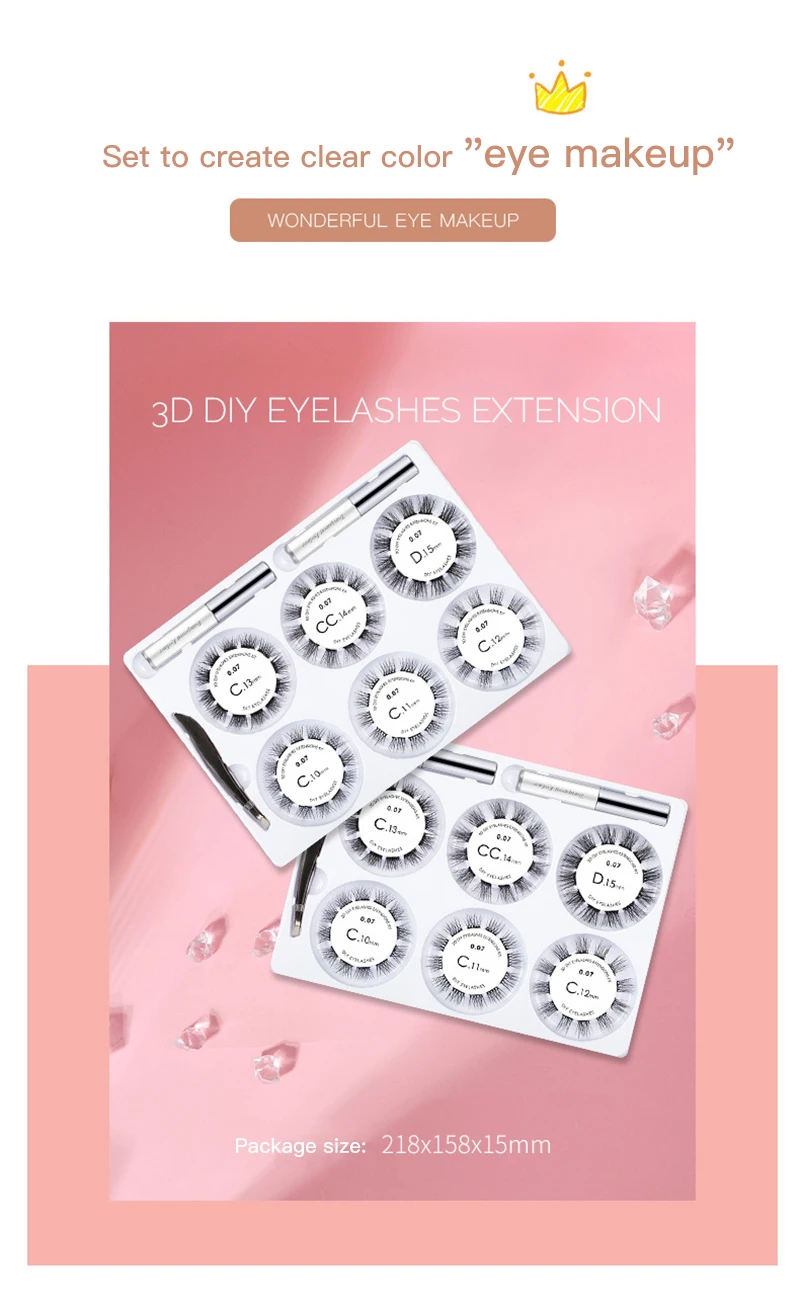 7. Количество: 1 комплект (+ 2 прозрачных жидких подводки для глаз + 72 пучка пинцетов для ресниц)