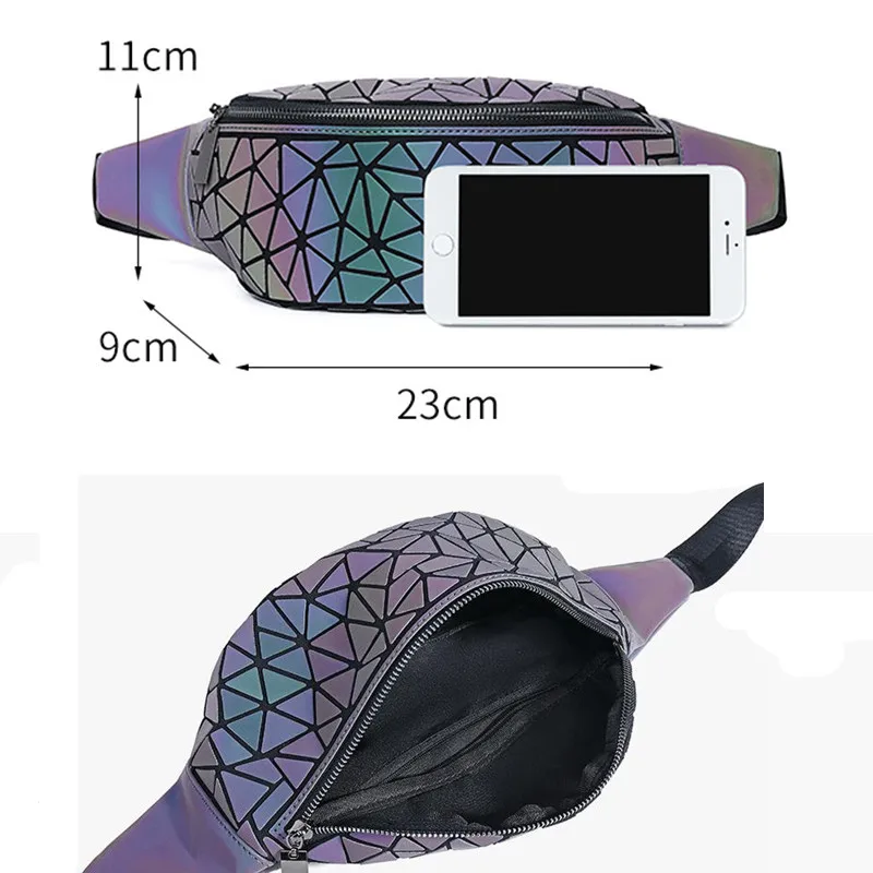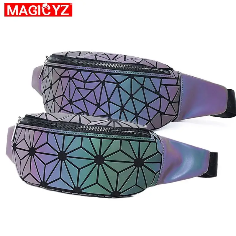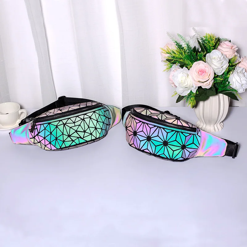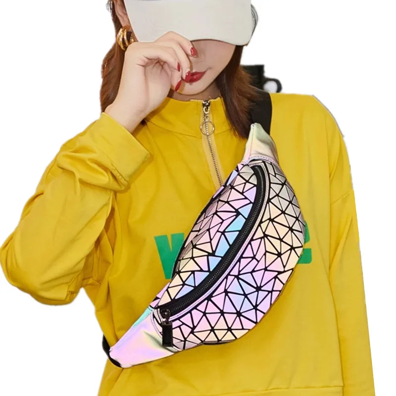 Спортивные поясные сумки для женщин, роскошные светящиеся нагрудные сумки, голографические отражающие Женские поясные сумки, кошелек, уличные поясные сумки