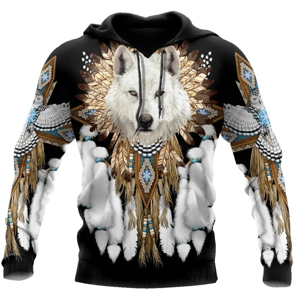 Родной дух волка 3D все напечатано, модные толстовки с капюшоном му...
