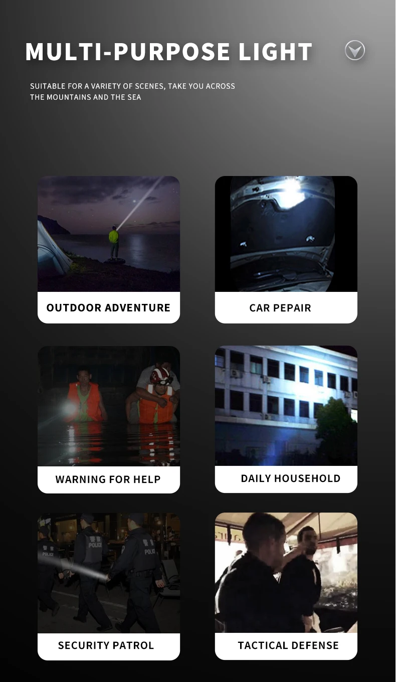 Лампа-светильник: светодиодный XHP50Размеры: 13,5*3,2*2,6 смВес нетто: 102 гЛюмен: 3 лмМатериал: алюминиевый сплавПереключатель: нажмите переключательАккумулятор: 1*18650Режимы переключения: 3 режима (высокий-низкий-Стробоскоп)Способ зарядки: зарядка через USBМетод масштабирования: телескопический зумХарактеристика:1. Оснащен ламповыми бусинами серии XHP50, яркость одной лампы XHP50 больше 4 ламповых бусин T6.2. Идеально подходит для охоты, приключений и других видов активного отдыха.3. Этот продукт имеет функцию напоминания о мощности, вы можете узнать статус питания фонарика в любое время и в любом месте4. Водонепроницаемый в соответствии с IPX-4, водонепроницаемый, может использоваться в дождливую погоду, но не может быть помещен в воду5. Дисплей емкости аккумулятора, Micro usb для компьютера, USB для автомобиля, USB разъем для зарядки, зарядный фонарик. USB фонарик также включает функцию выхода USB, вы можете зарядить ваше Развлекательное Оборудование6. Подходит для работы, охоты, альпинизма, рыбалки, кемпинга и активного отдыха и т. д.