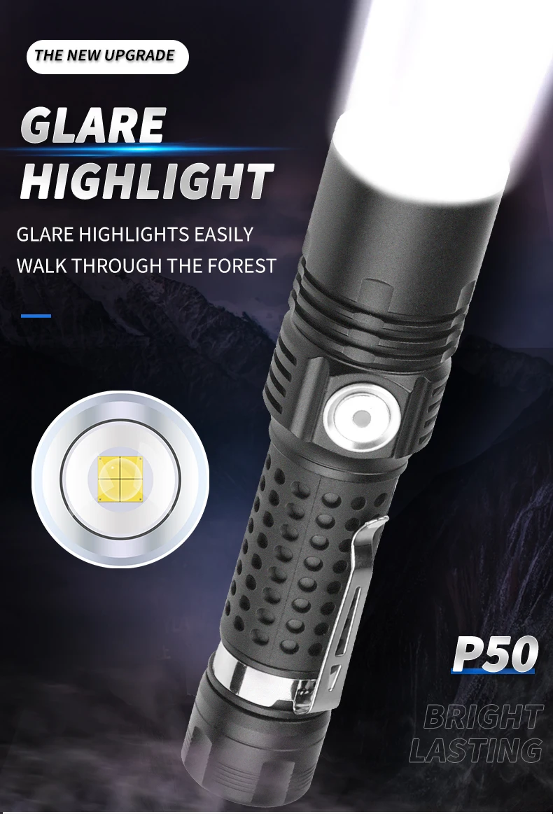 Суперъяркий светодиодный фонарик XHP50, мощный водонепроницаемый фонарь, перезаряжаемый от USB, фонарь 18650, портативный фонарь с зумом, фонарик для кемпинга, мигающий