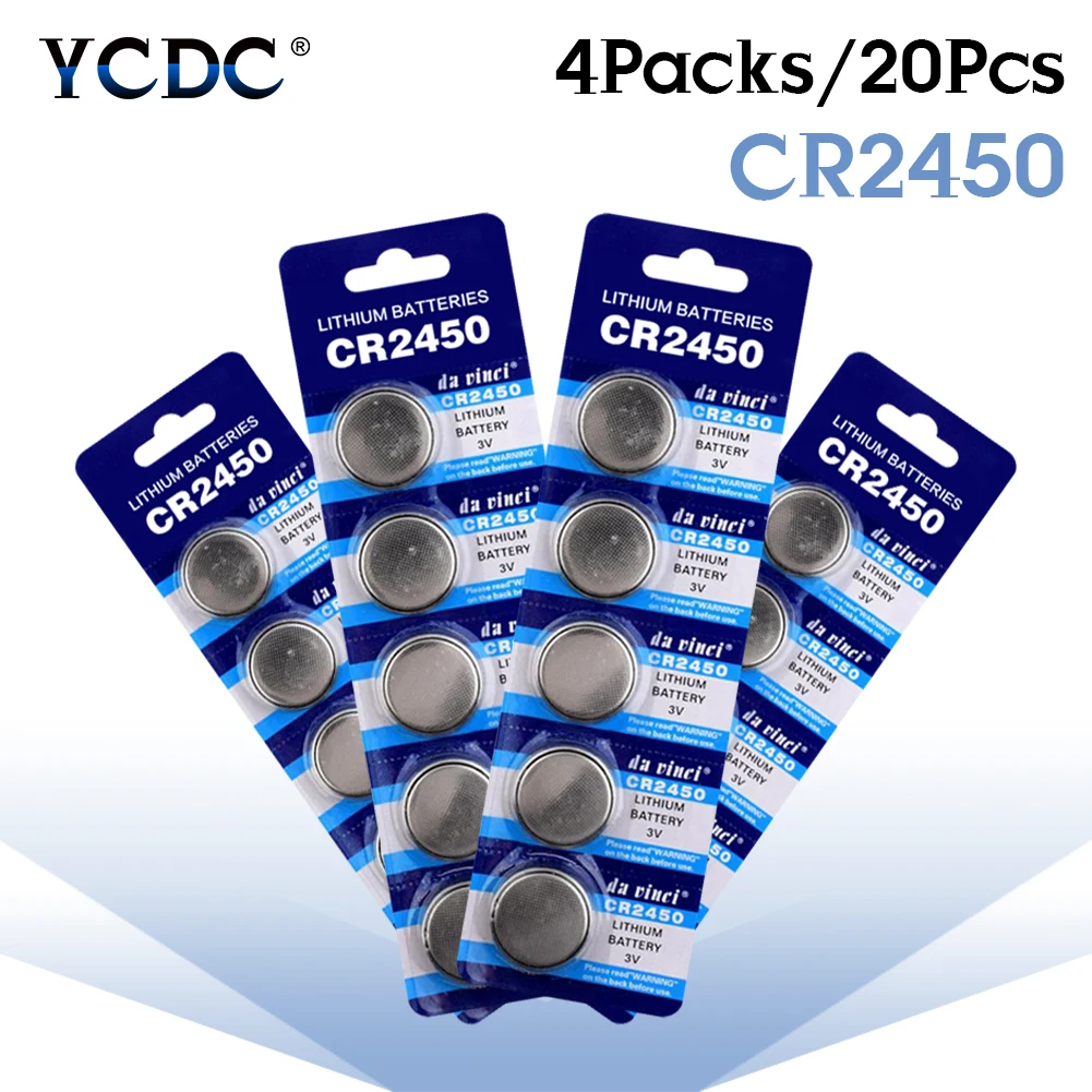 YCDC 20 шт. кнопочная Батарея CR2450 электронный литиевая батарейки-таблетки 3V KCR2450 5029LC LM2450 часы игрушка пульт дистанционного управления