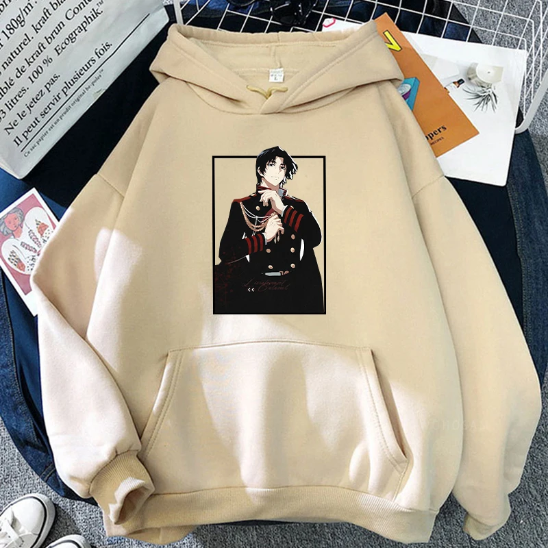 Толстовка мужская зимняя с капюшоном и принтом серафа из аниме гурен ихиноза