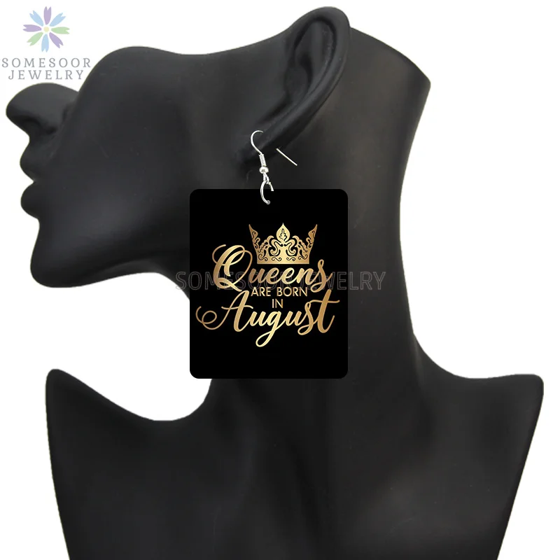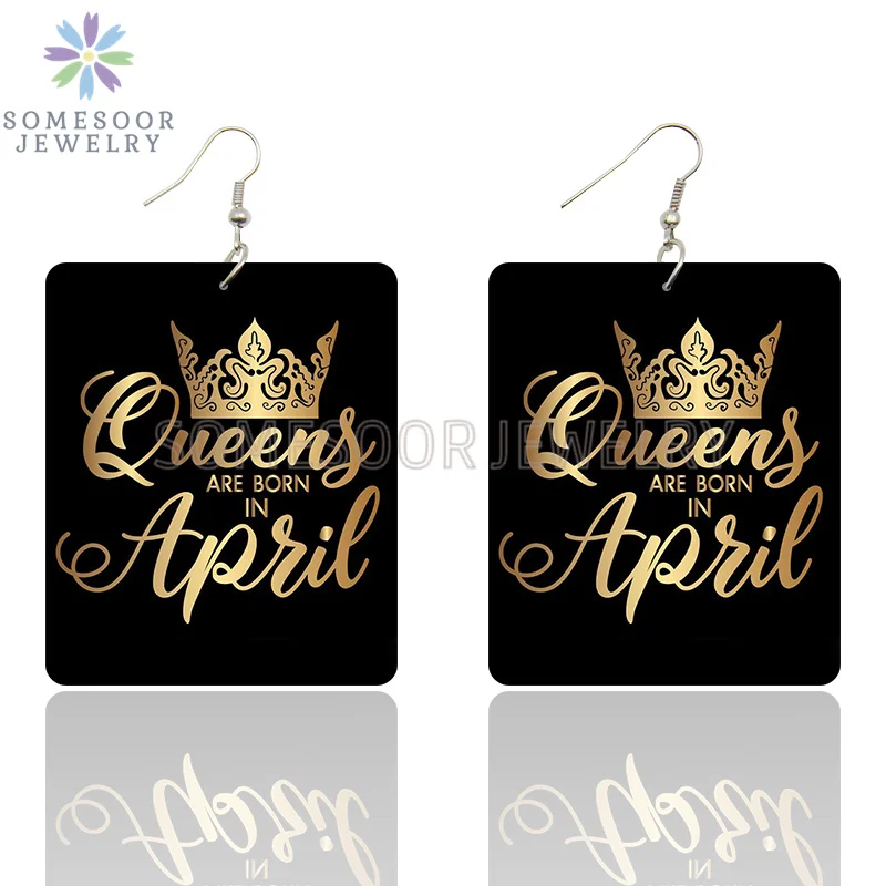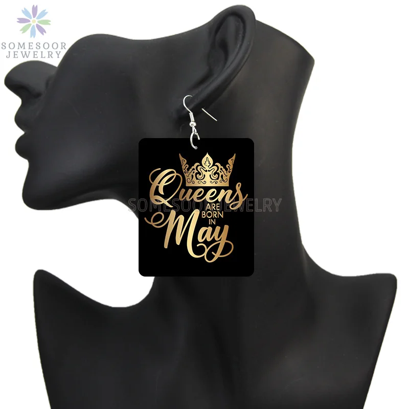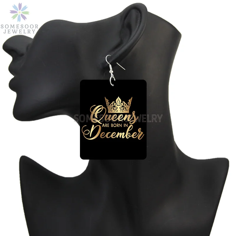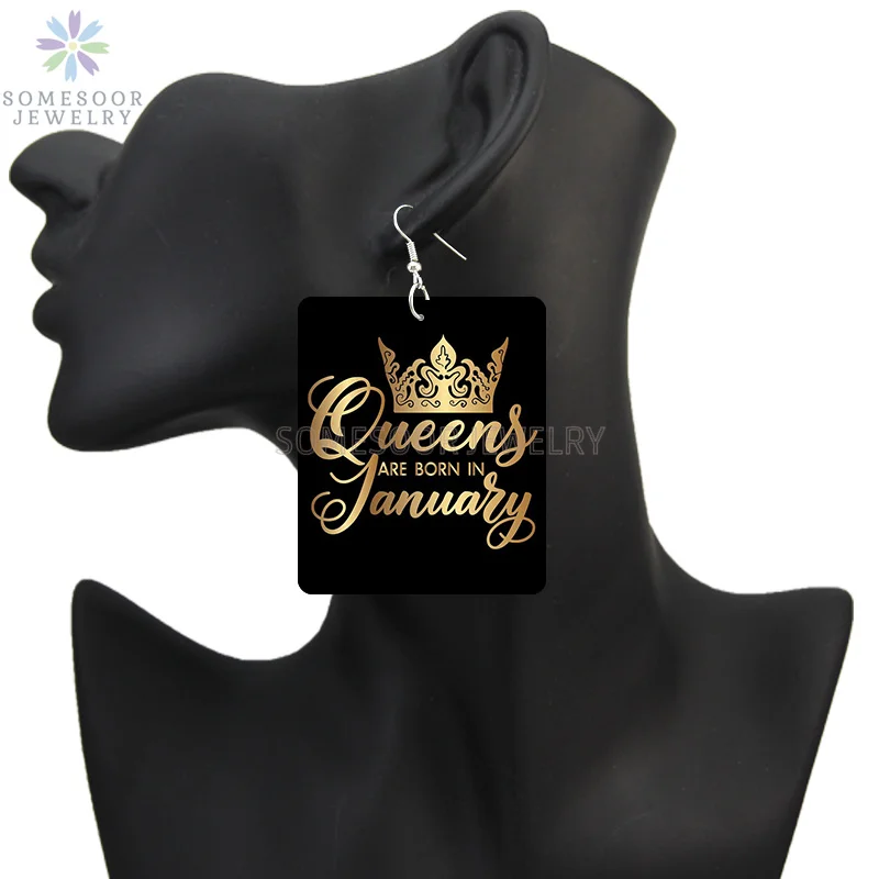SOMESOOR, Черная Королева, рождены в 12 месяцев, деревянные серьги-капли, Золотая Корона, принт, африканская Подвеска для женщин, подарки на день рождения