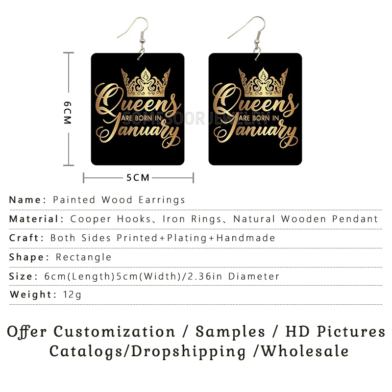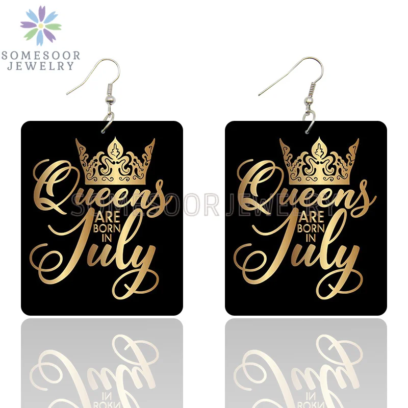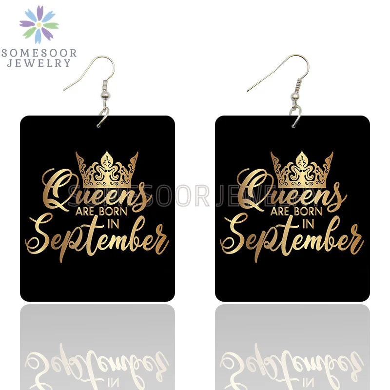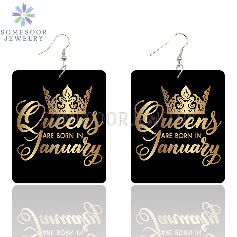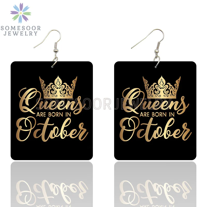 SOMESOOR, Черная Королева, рождены в 12 месяцев, деревянные серьги-капли, Золотая Корона, принт, африканская Подвеска для женщин, подарки на день рождения