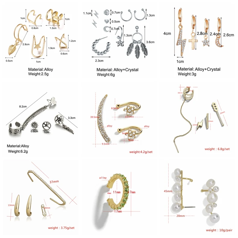 12 шт. серьги-клипсы на уши, серьги-каффы, серьги на хрящевую ткань...