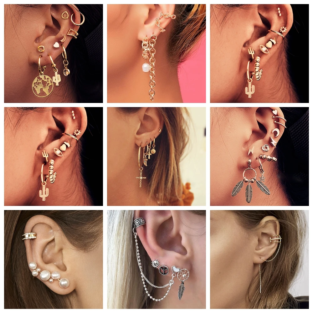 Каффы для ушей женские, 15 шт., 2021, без имитации пирсинга, серьги...