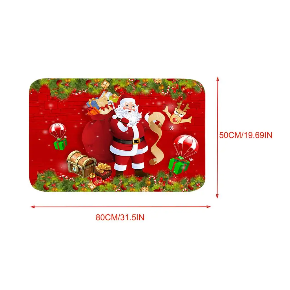 1. Практичный и модный: этот милый взаимозаменяемый коврик для сезонного внутреннего/наружного отдыха может приветствовать Ваших стильных гостей во время рождественских праздников.2. Долговечные и многоразовые: они невероятно долговечны в течение длительного времени, что делает их идеальными для высоких транспортных зон. И вы можете использовать его, чтобы тепло приветствовать всех, кто входит в ваш дом.3. Легко чистить: мы ориентируемся на повторное использование и стиль! Легко моется с мылом и водой.4. Нескользящий дизайн: Наш коврик является естественным и экологичным продуктом. Каждый коврик имеет переработанную резиновую подложку для обеспечения стабильности нескользящей рукоятки.5. Идеальный подарок: подходит в качестве подарка для себя. С большим количеством дизайнов на выбор, вы, несомненно, найдете идеальный и уникальный подарок на новоселье для новых соседей или старых друзей.Характеристики:Название: Рождественский коврикРазмер: около 50*80 см/19,69*31,5 дюйма (из-за ручного измерения разница составляет около 1 см/0,39 дюйма)Вес: около 10 5g (из-за ручного измерения разница примерно в 5g)Материал: фланелевая тканьПосылка: одна OPP посылкаУпаковочный лист:1 х напольный ковер