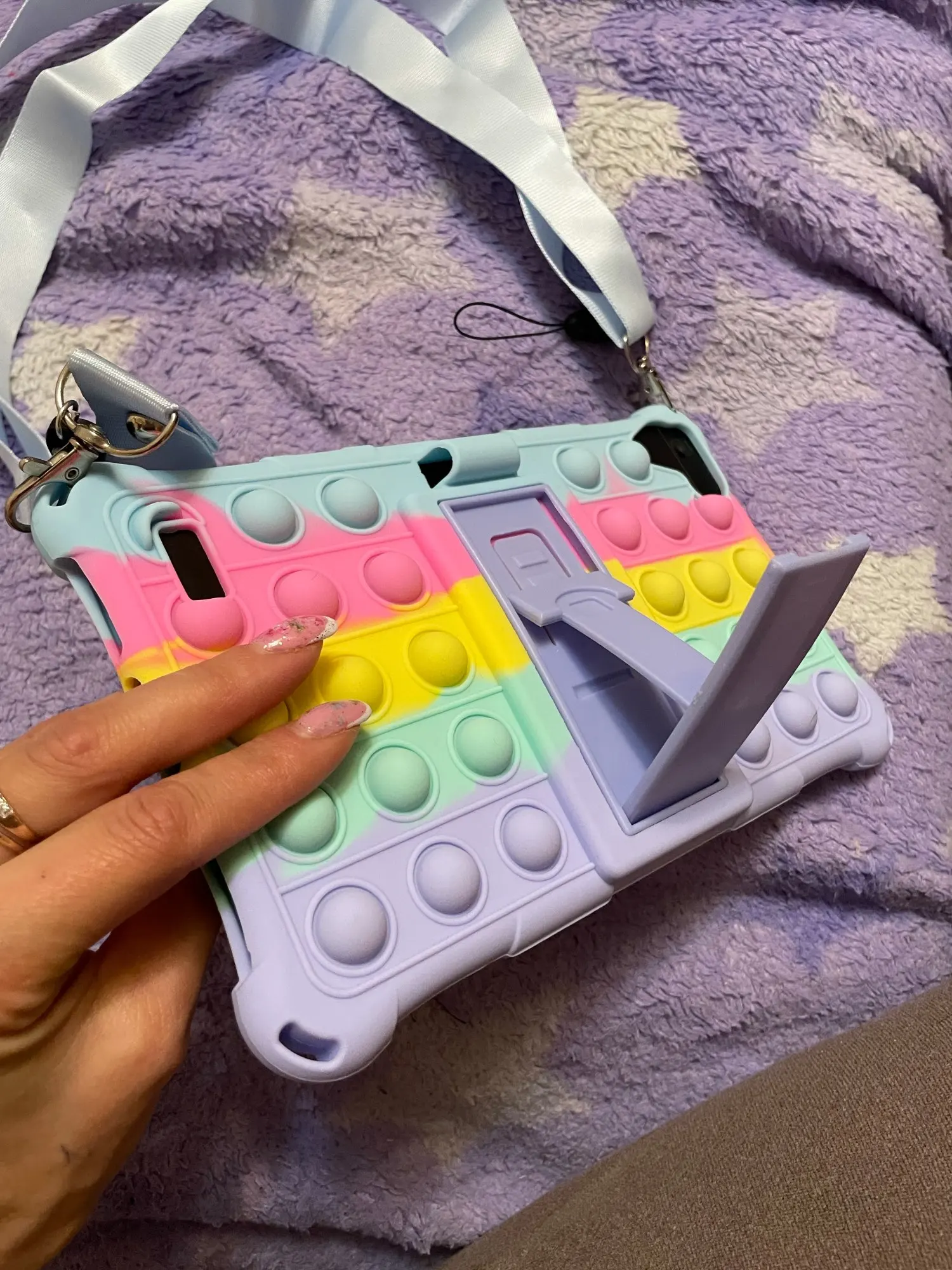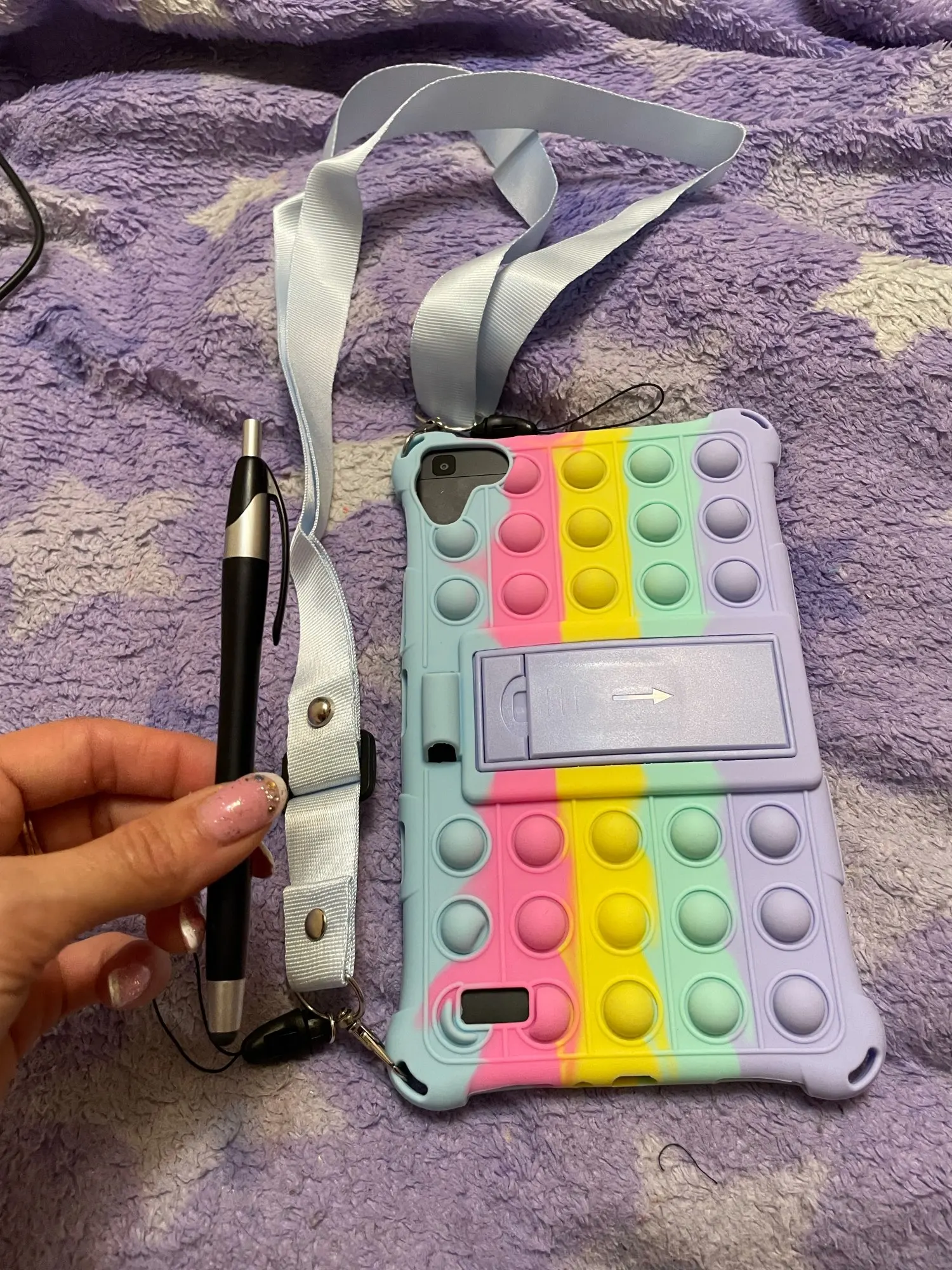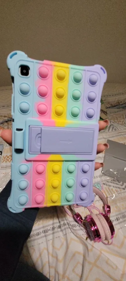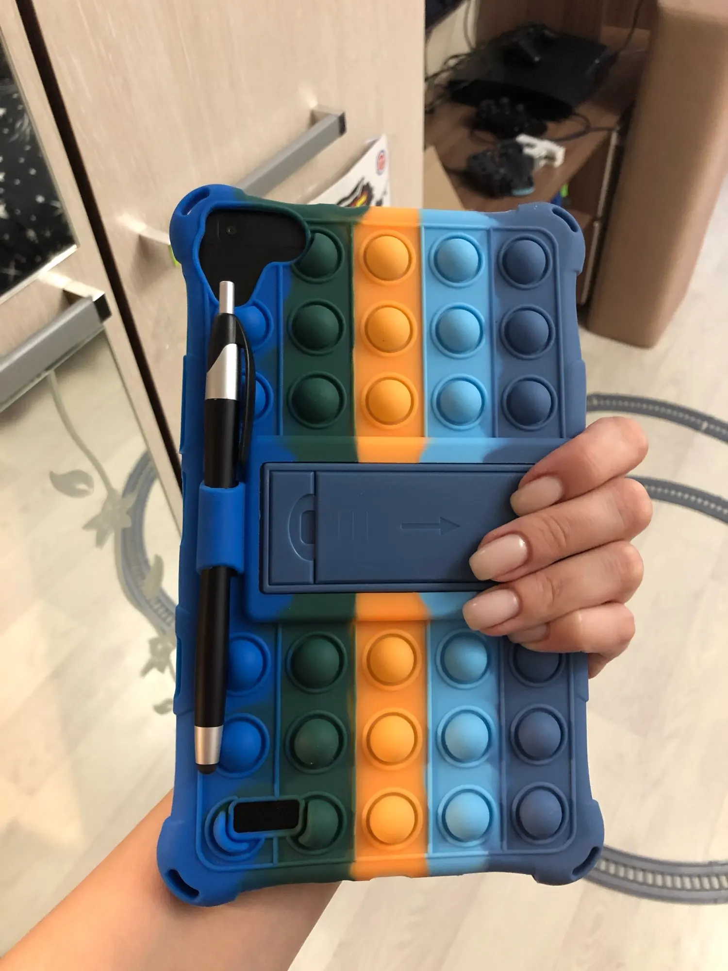 Заказ застрял на таможне на почти +2 недели. Сам чехол симпатичный, яркий, дочери нравится. Пупырки конечно декоративные, играть ими не получится. И ручка-стилус хлипкая совсем.