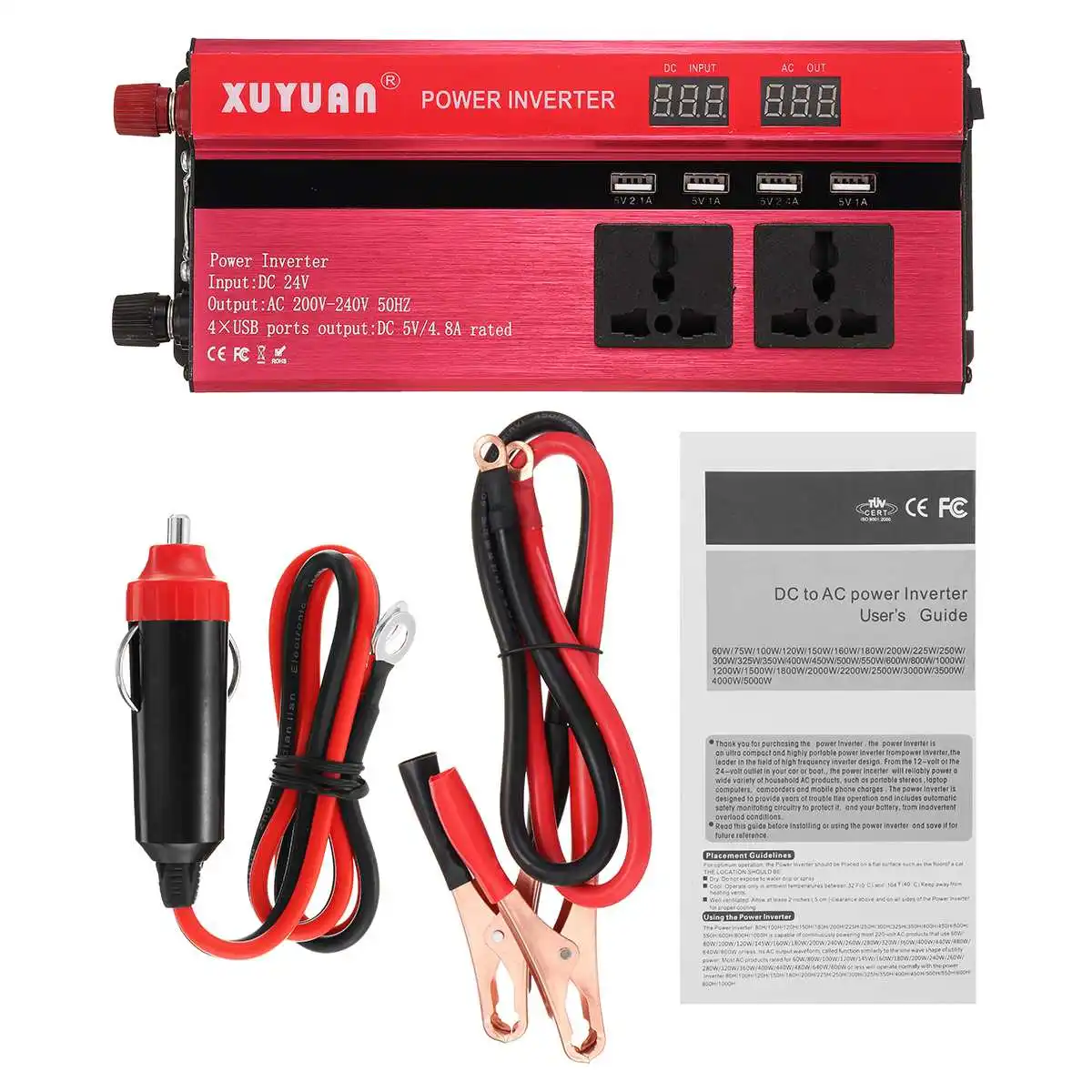 Посылка включает в себя:1*4000W DC12/24V к AC110V/220V солнечный инвертор1 * кабель с зажимом1 * Автомобильное зарядное устройство
