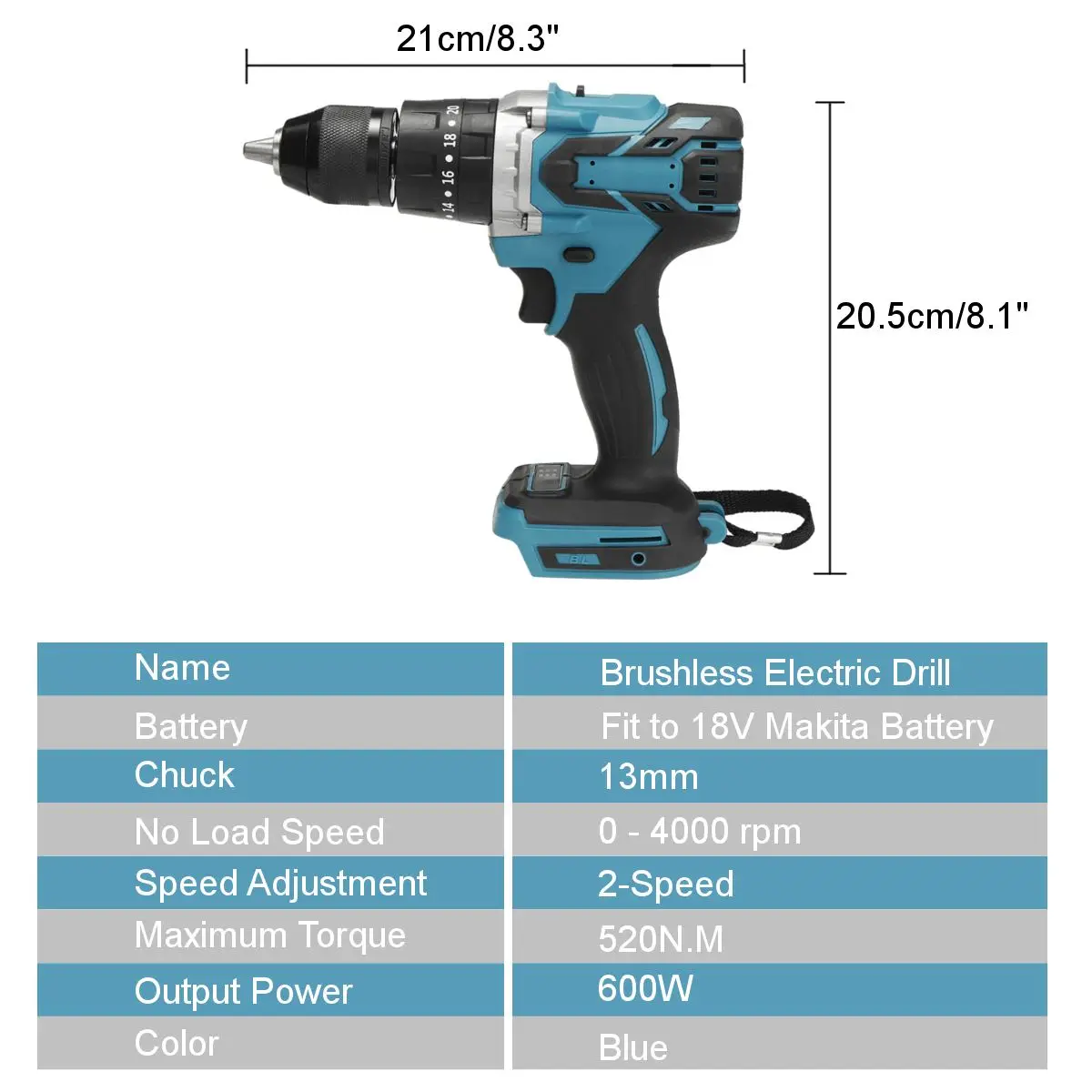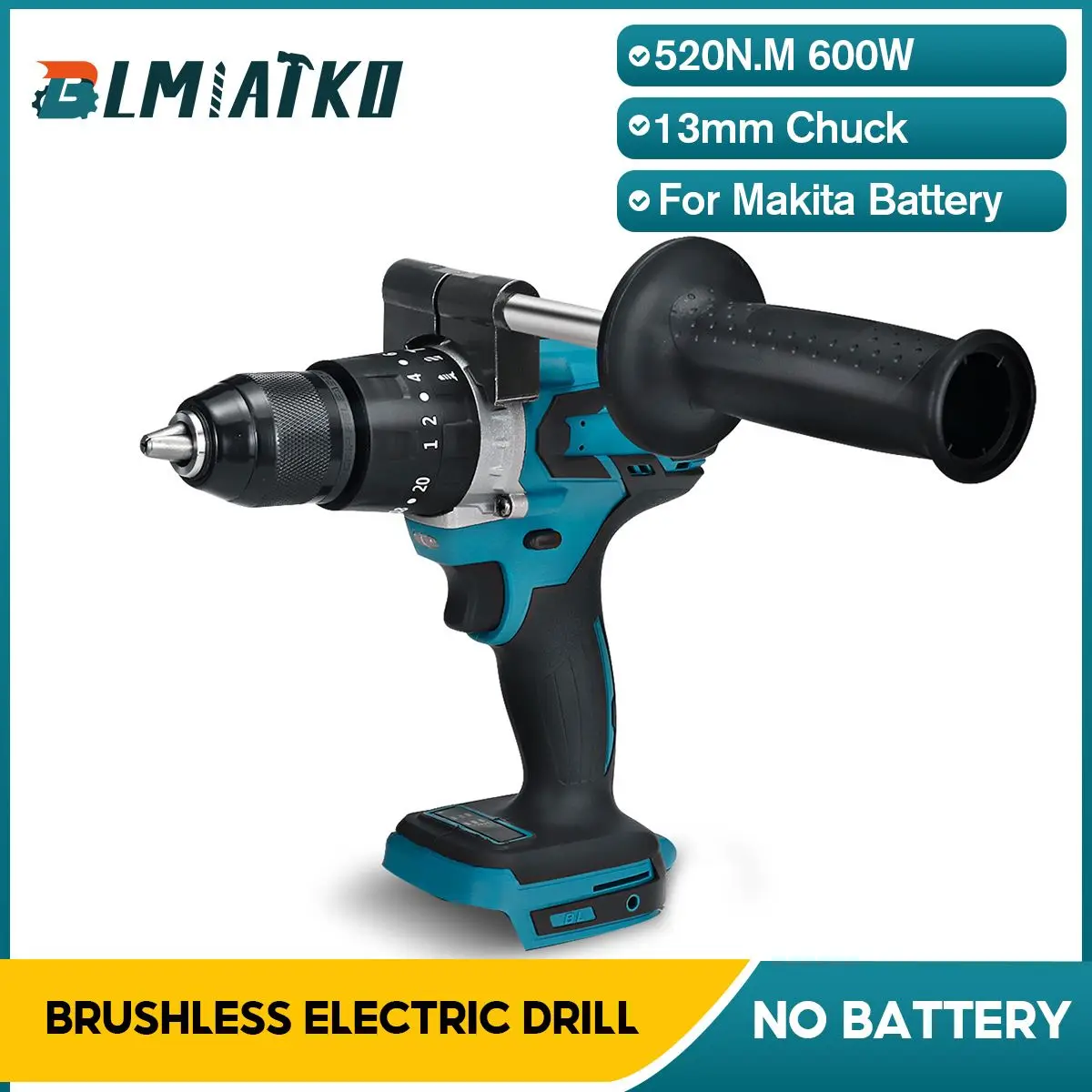 BLMIATKO 520NM 13 мм бесщеточная Аккумуляторная дрель с крутящим моментом 20 с ударным 3-функциональным мини электрическим электроинструментом с поддержкой батареи Makita