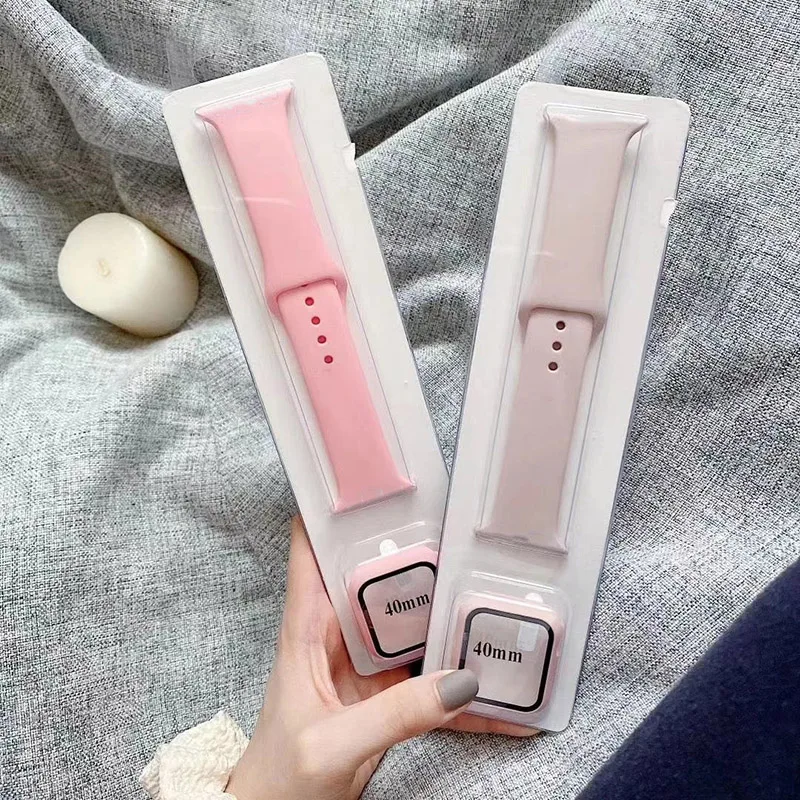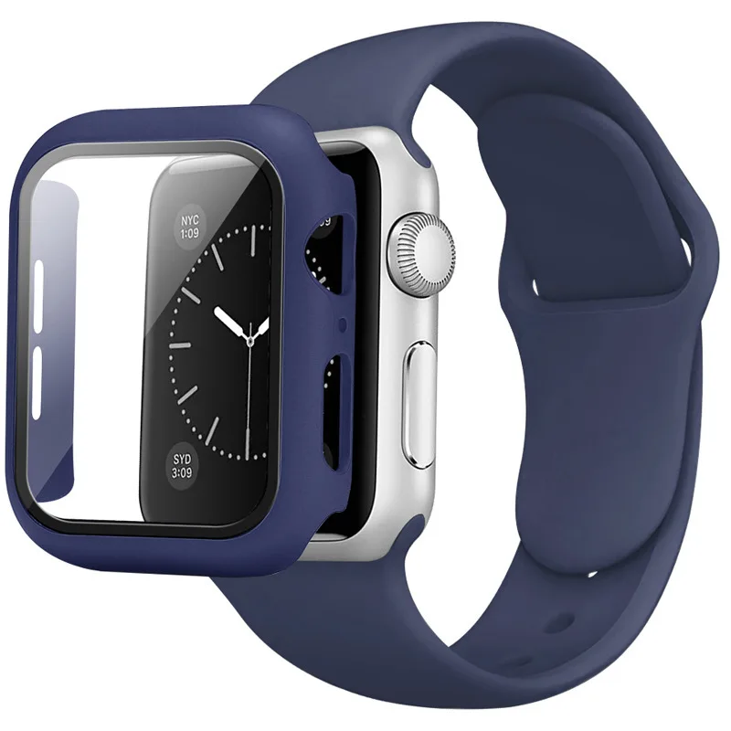 Ремешок и чехол для Apple Watch Band 44 мм 40 мм, силиконовый бампер и браслет для iWatch band 42 мм 38 мм, Apple Watch series 4 3 5 SE 6