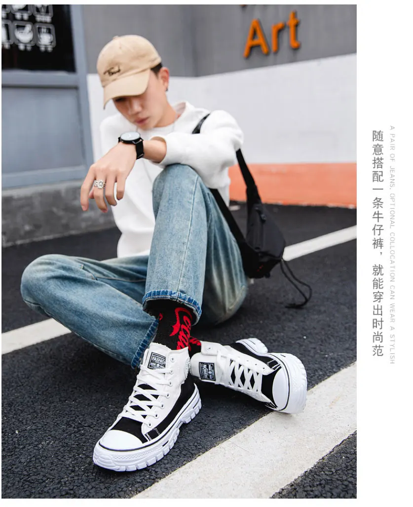 Мужские парусиновые кроссовки, с высоким берцем, для спорта и отдыха, весна-лето, 2021
