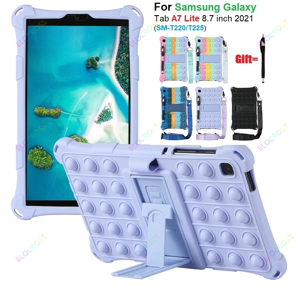 Тонкий чехол для Galaxy Tab A7 Lite 8,7 дюйма, Детский мягкий Силиконовый противоударный чехол с подставкой и ремешком, чехол для T220T225T227