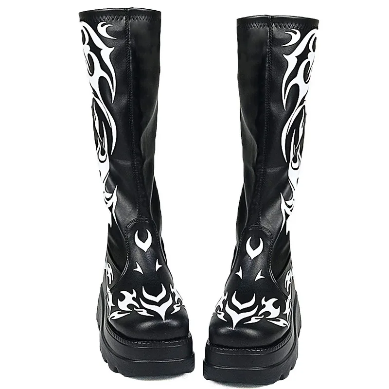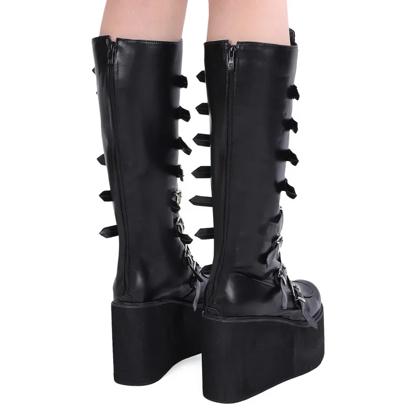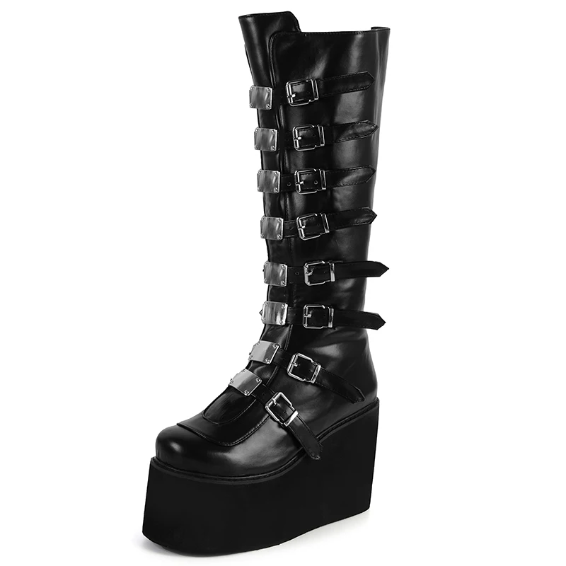 Женские ботинки до бедра, черные ботинки на платформе, готическая о...