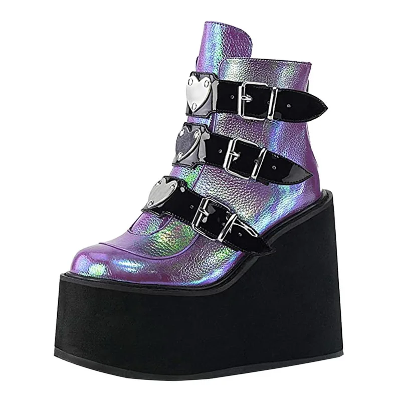 Женские ботинки на танкетке, ботильоны на толстой подошве, в готиче...