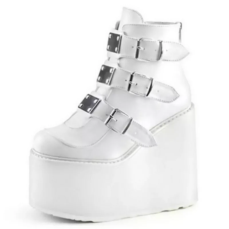 Женские ботинки на танкетке, ботильоны в готическом стиле, на высоком каблуке и платформе, с пряжкой, большие размеры до 43, 2021