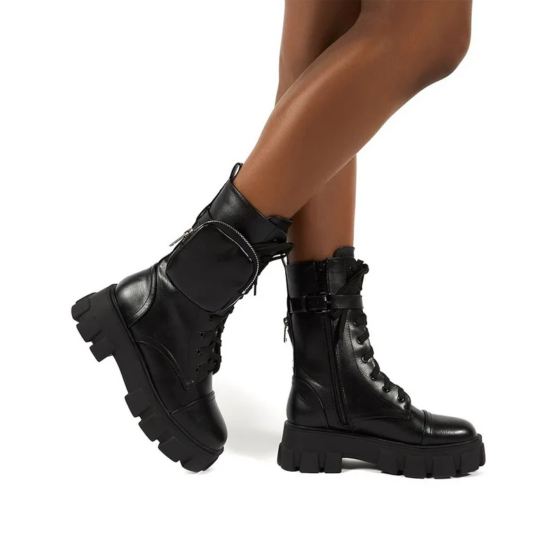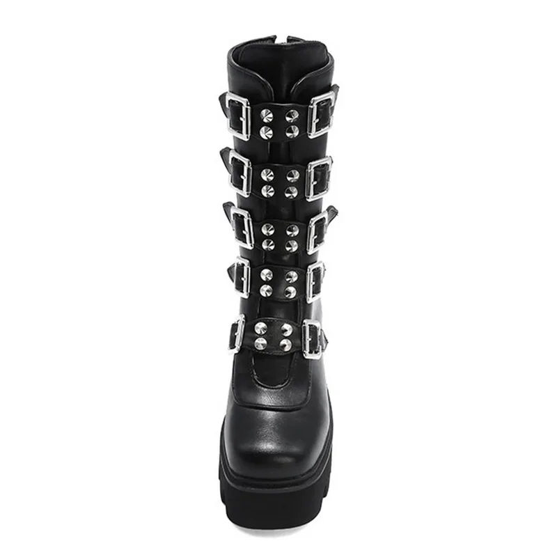 Женские ботинки в готическом стиле, черные ботинки до середины икры...