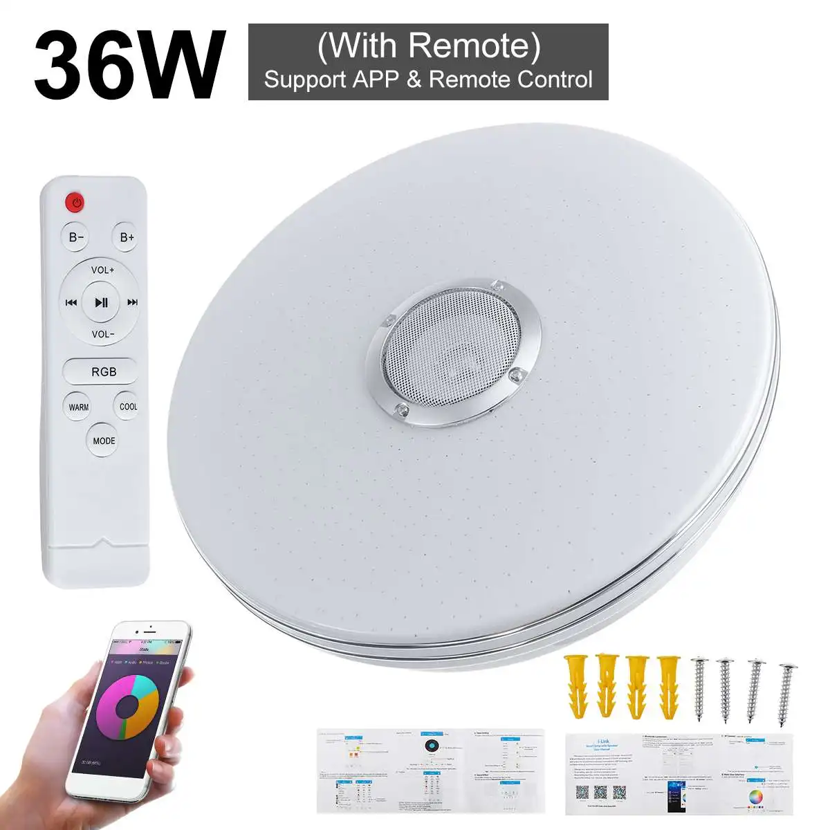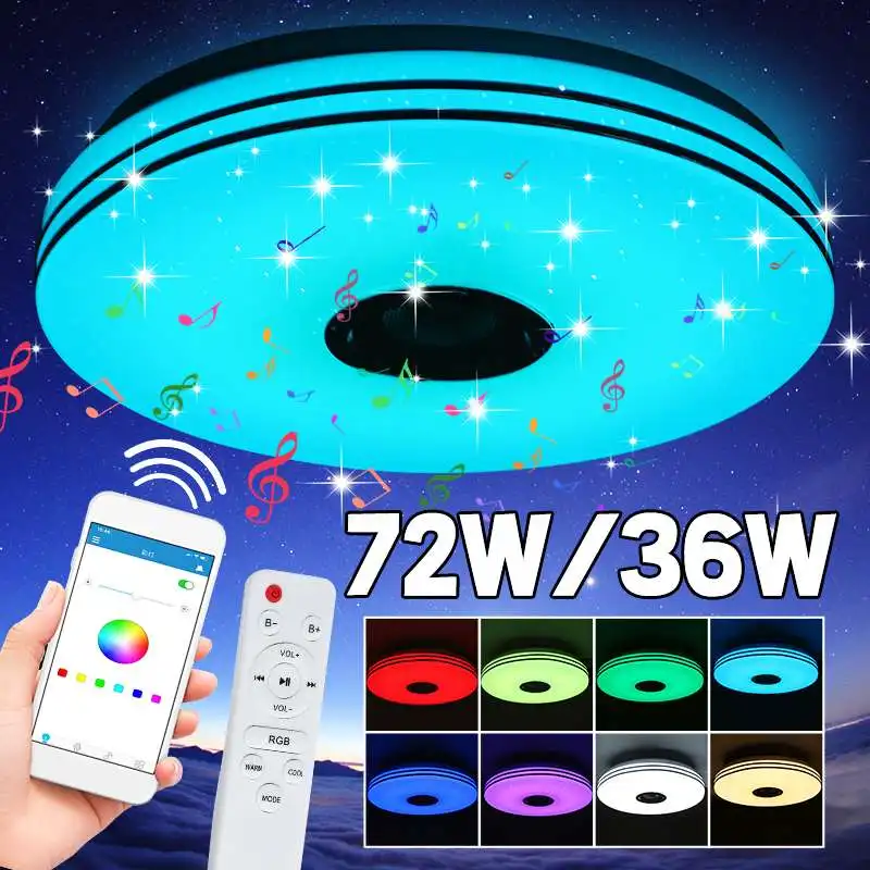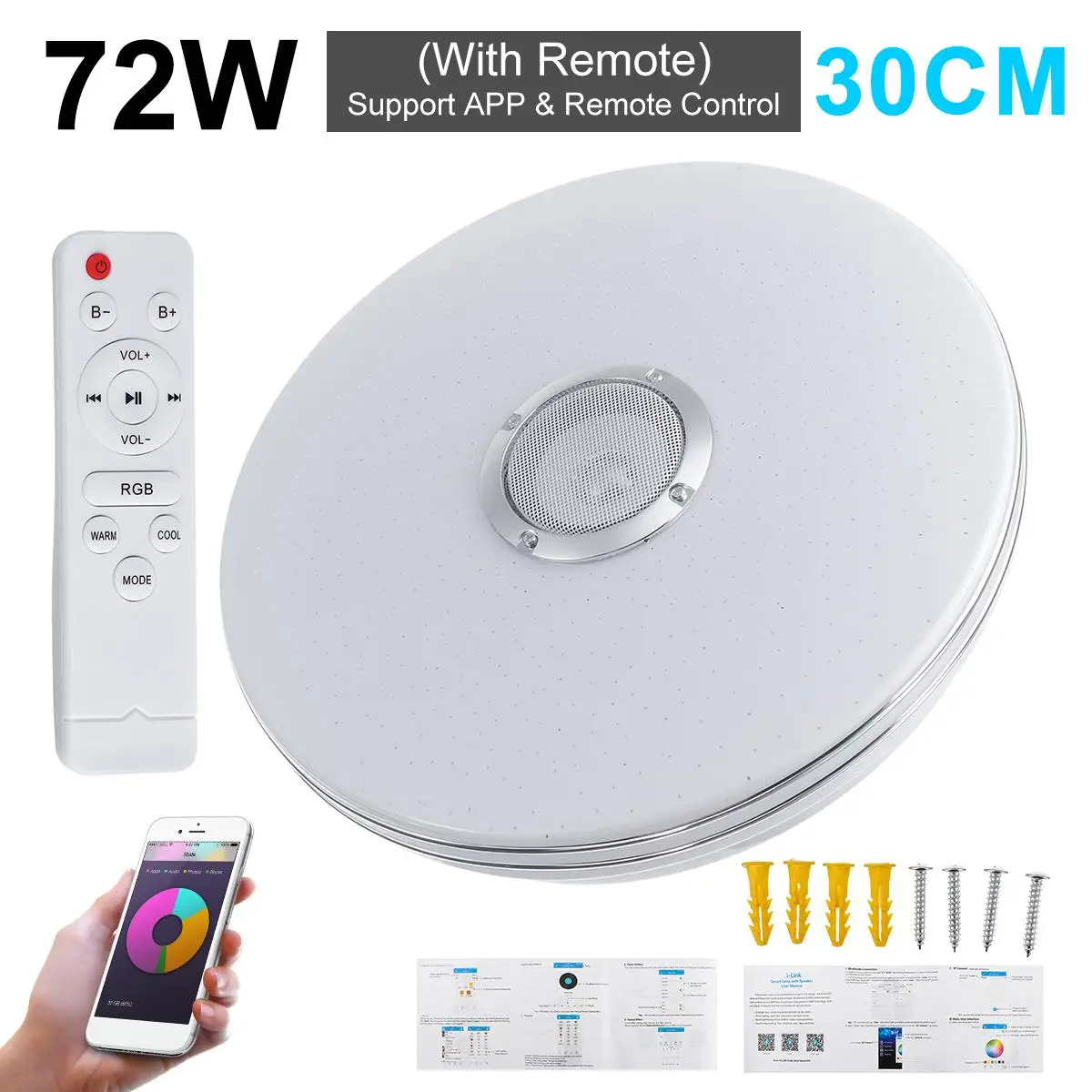 Есть 2 варианта на Ваш выбор:-С пультом дистанционного управления: Поддержка приложения и дистанционного управления1X умный светодиодный потолочный светильник1X пульт дистанционного управления1 комплект аксессуаров для установки-Без удаленного типа: поддержка управления через приложение1X умный светодиодный потолочный светильник1 комплект аксессуаров для установкиПараметрыНапряжение: с пультом дистанционного управления: от 110 до 220 В без пульта ДУ: 220 В переменного токаДиаметр: 33 см/13 дюймовМощность: 36 Вт/72 ВтРежим управления: настенный выключатель/Управление мобильным приложением/дистанционное управлениеСветильник режимы: подстраиваются под ночной светильник, холодный белый, теплый белый, нейтральный светильник тусклый или яркий, музыкальный ритм прозрачный градиентный фон красочный flashinging светильникОсобенности:* Изготовлено из Высококачественная светодиодная микросхема, толстый акрил, который обеспечивает долгий срок службы, долговечный для использования.* Умное управление: светильник может управляться различными способами, такими как настенный выключатель, мобильное приложение и пульт дистанционного управления, что обеспечивает более удобство управления.* Мульти-Режим работы: он имеет много режимов, белый светильник, теплый светильник, нейтральный светильник, прочный светильник, режимы сцены, такие как музыкальный ритм, градиент, красочный светильник с подсветкой, чтобы удовлетворить ваши различные потребности гибко, очень практично для вашей повседневной жизни.* Мобильное приложение и bluetooth могут регулировать яркость, менять цвет, пульт дистанционного управления может включать и выключать светильник, регулировать яркость и цвет, воспроизводить песни, регулировать громкость, это такой умный потолочный светильник, который изменит вашу концепцию на потолочный светильник, Это как верный компаньон, который позаботится о вашем настроении.* Энергосбережение: с ярким источником высокой мощности Светодиодный светильник, экономия большой мощности по сравнению с тем же уровнем яркости нормальный светильник, который не применяется светодиодный чип, экологически чистый.