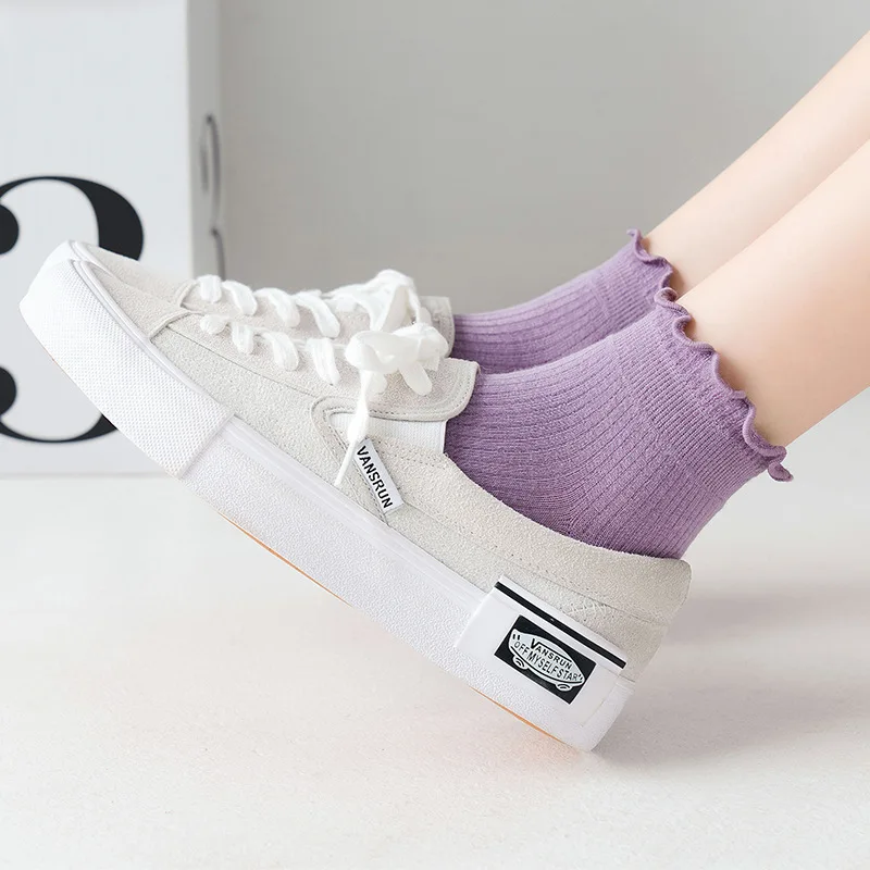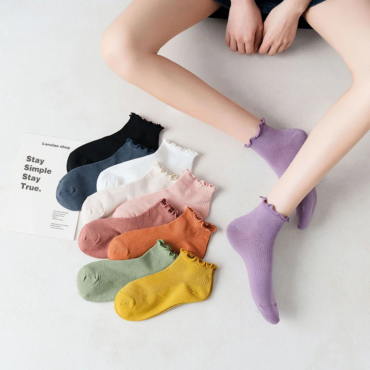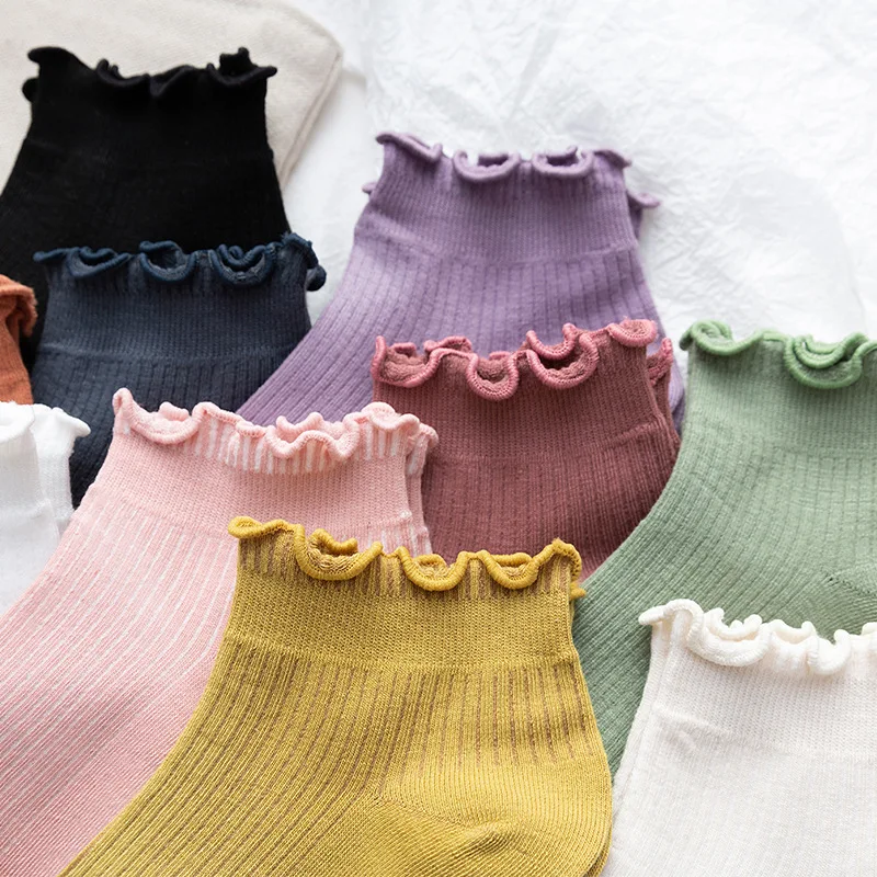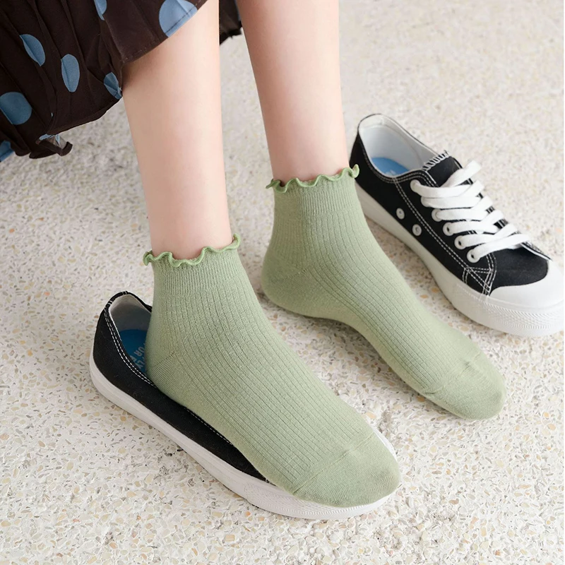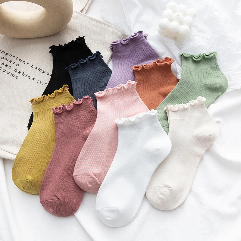Носки Frilly, милые кавайные однотонные женские хлопковые носки в уличном стиле, дизайнерские женские носки в стиле Харадзюку