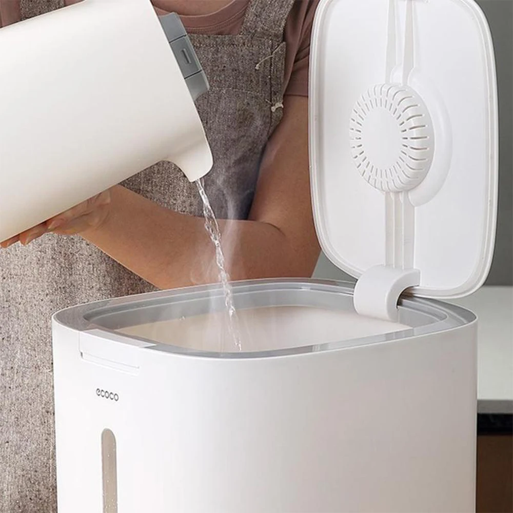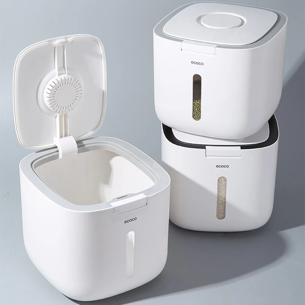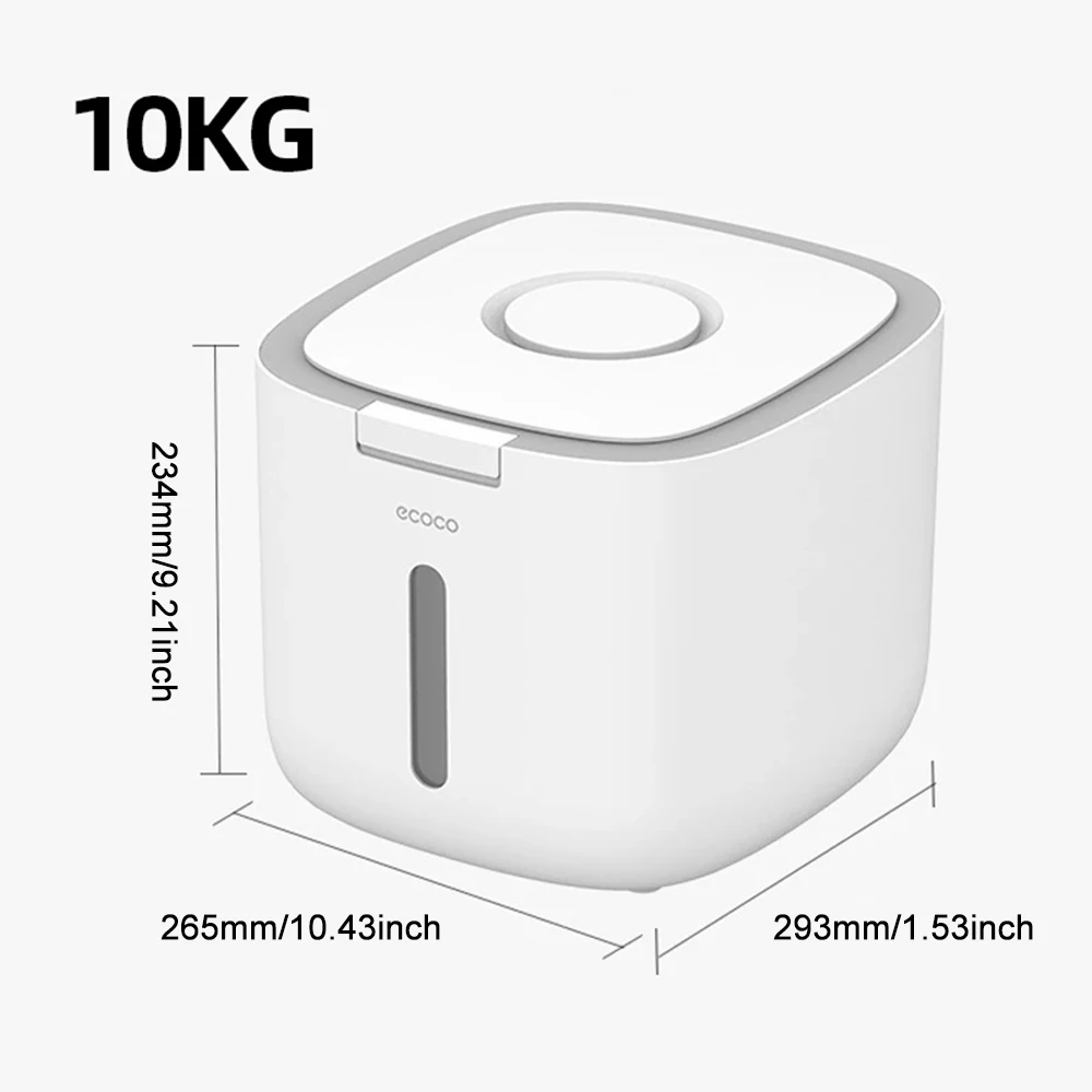 Использование и функции: хранение, нажмите, чтобы открыть крышку, большая емкость 10 л, визуальный дизайн, коробка из материала с защитой от насекомых, силиконовая прокладка, влагостойкая и водонепроницаемая.