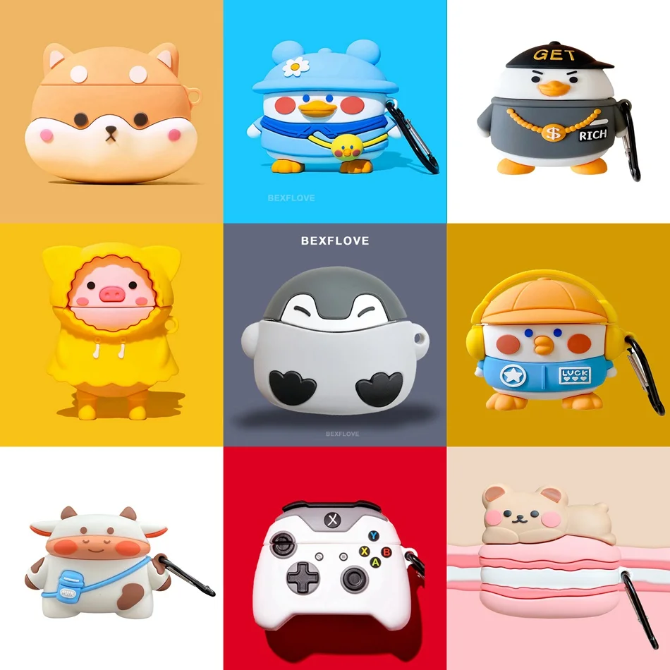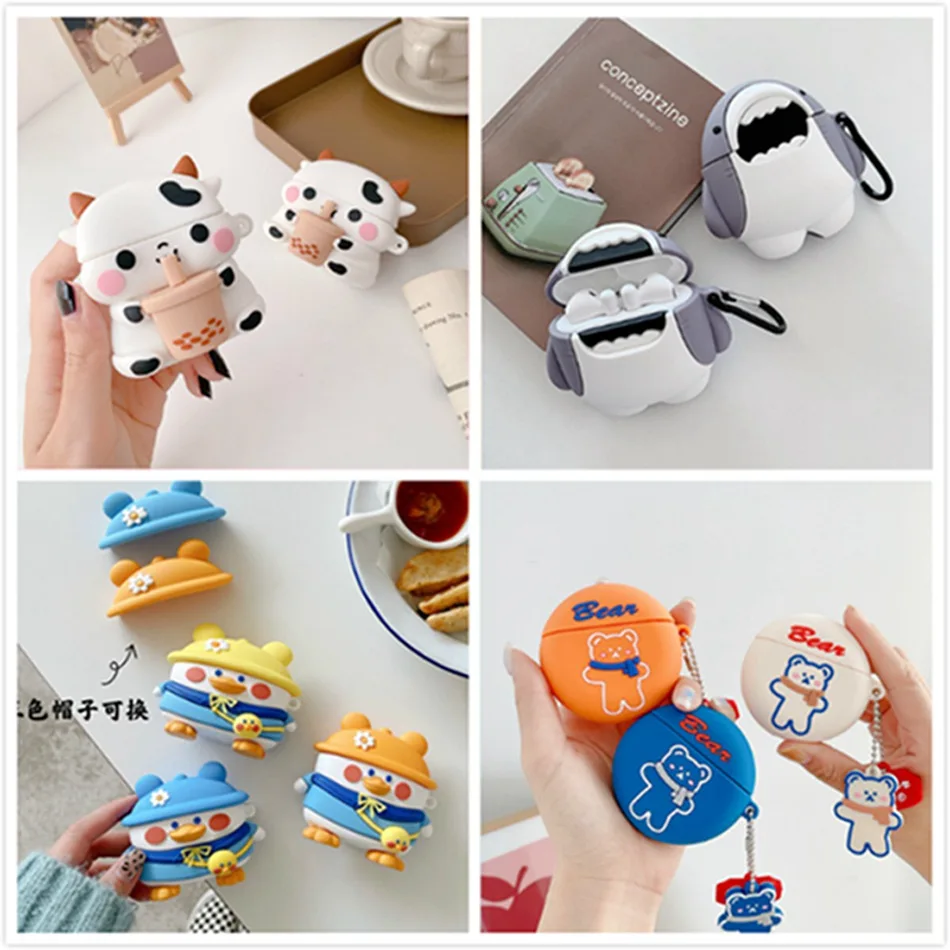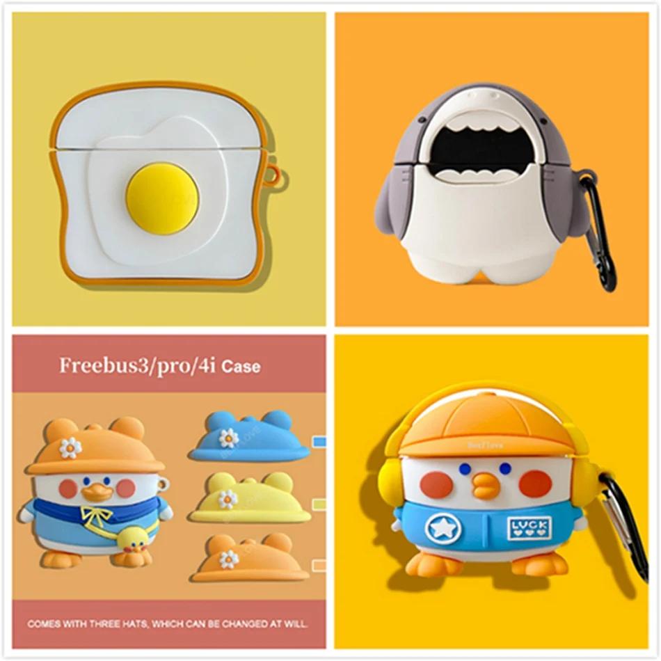 Чехол для наушников Huawei Freebuds 3 с милым медведем, силиконовый чехол с рисунком утки для Freebuds 3, чехол для наушников-вкладышей, брелок