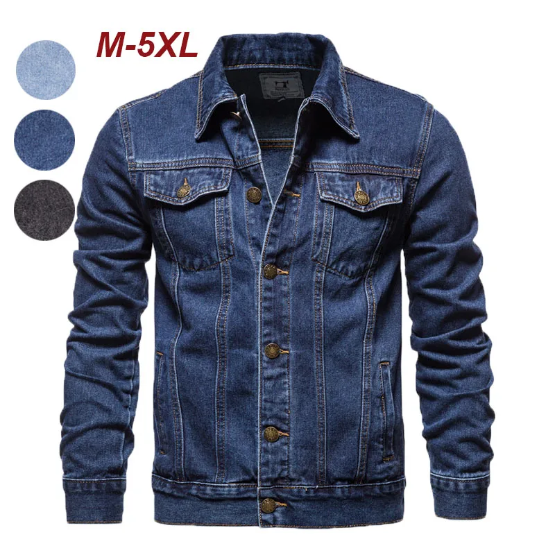 Куртка мужская джинсовая однотонная, Повседневная Уличная одежда из...