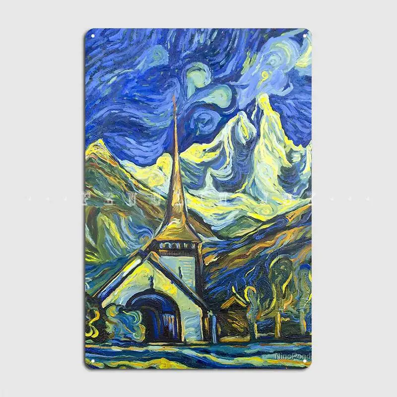 Les Praz церковь в шамониксе, картина маслом, металлический плакат, паб, гараж, винтажная настенная фотография, плакат